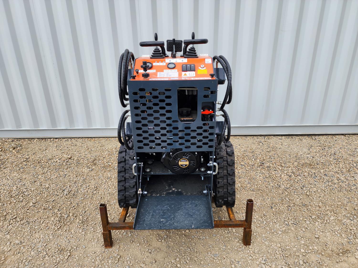 Open station, 420CC gas engine, 38 inch smooth bucket, manual coupler, 1 auxiliary hydraulics, battery disconnect, LED light, digital gauges, joy stick controls, 6 inch rubber tracks