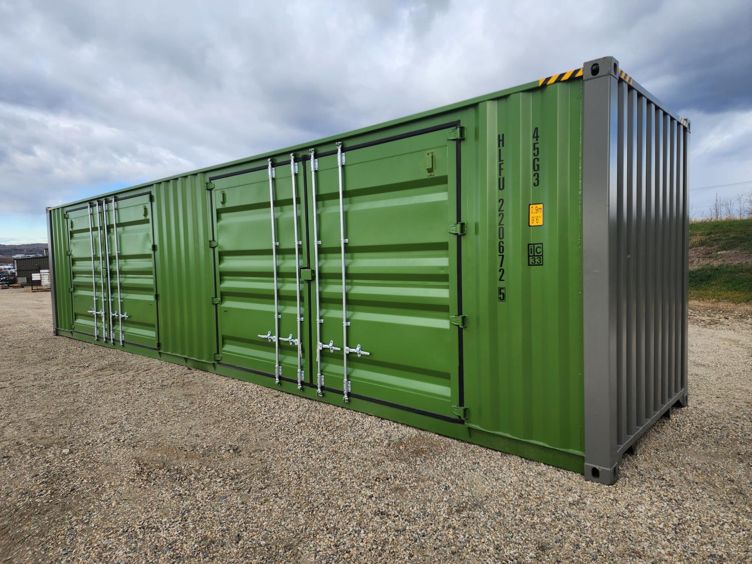 (2) side doors, (1) one end door, one time use