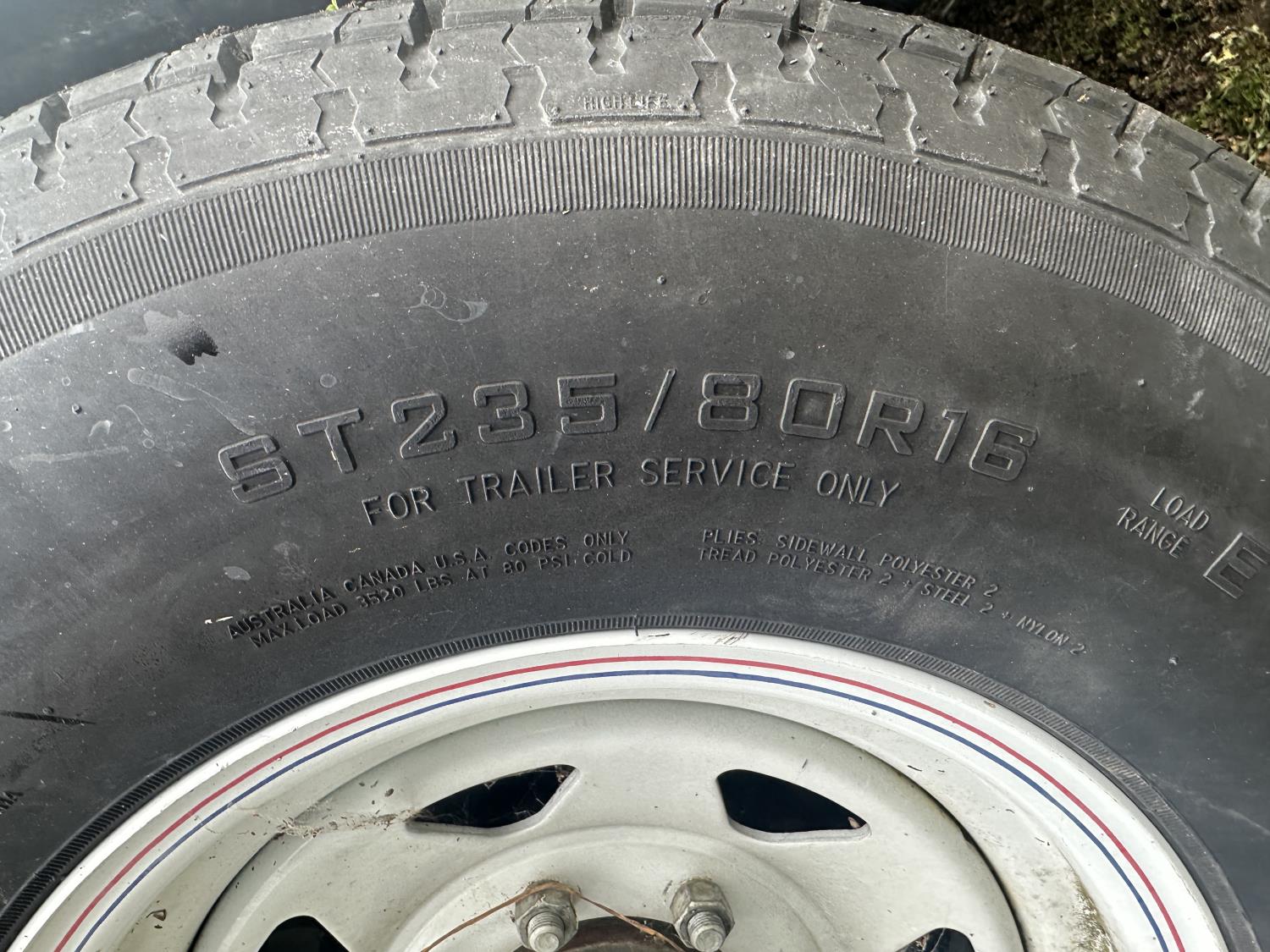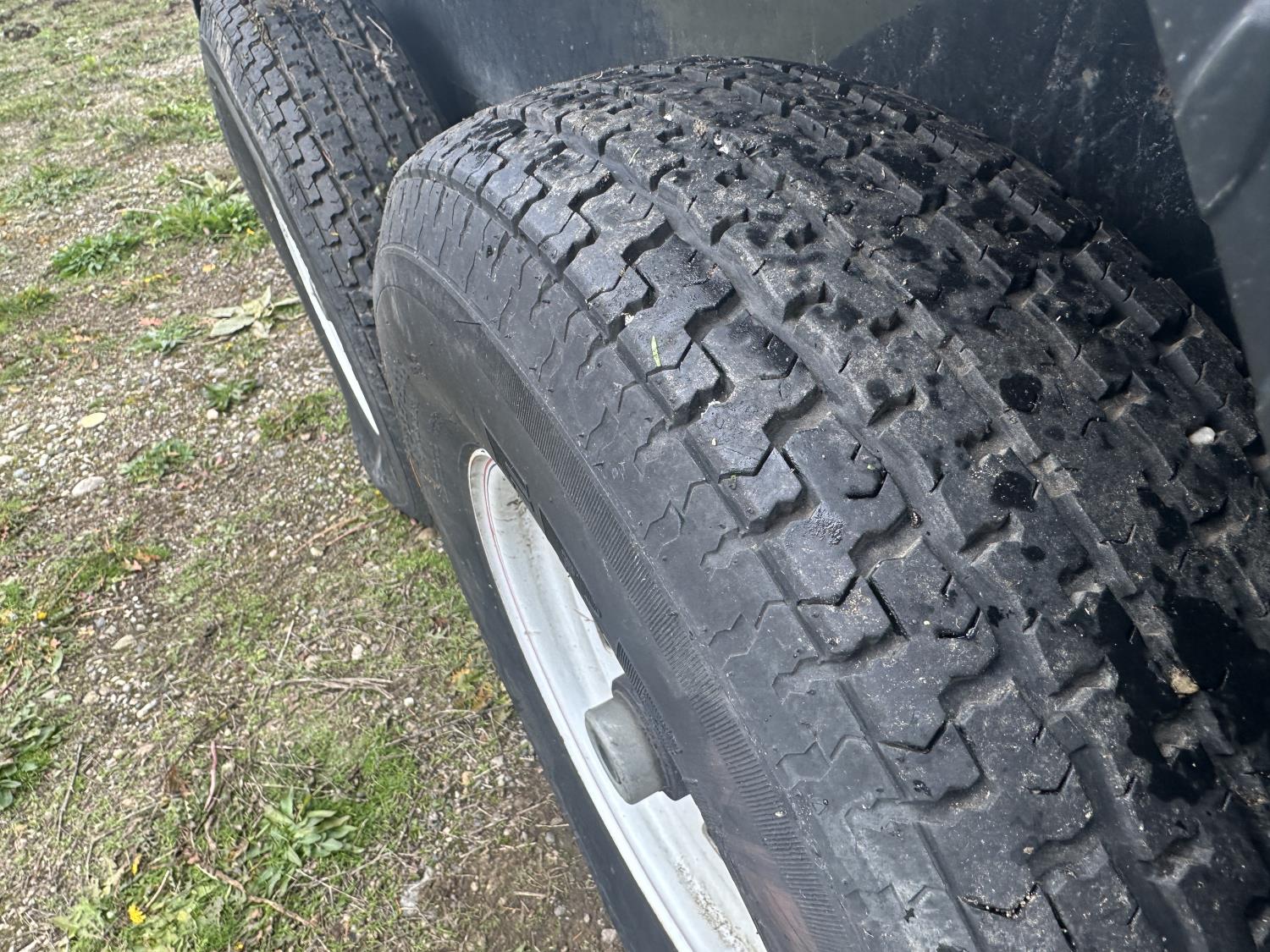 96 inch wide deck, 60 inch beaver tails, wood deck, stand up ramps, electric brakes, spring suspension, ball hitch, tool / storage box, rub rails, stake pockets, 235/80R16 tires