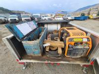 Includes: Mueller CL-12 Drilling/tapping Machine, various drill bits, Stanley Vanguard commercial power 18 HP Brigs and Stratton compressor, Water Reservoir, Trailer: Single axle, 1400 lb GVW, electric brakes, rear support legs, tonneau cover, ST175/80/R13 tires