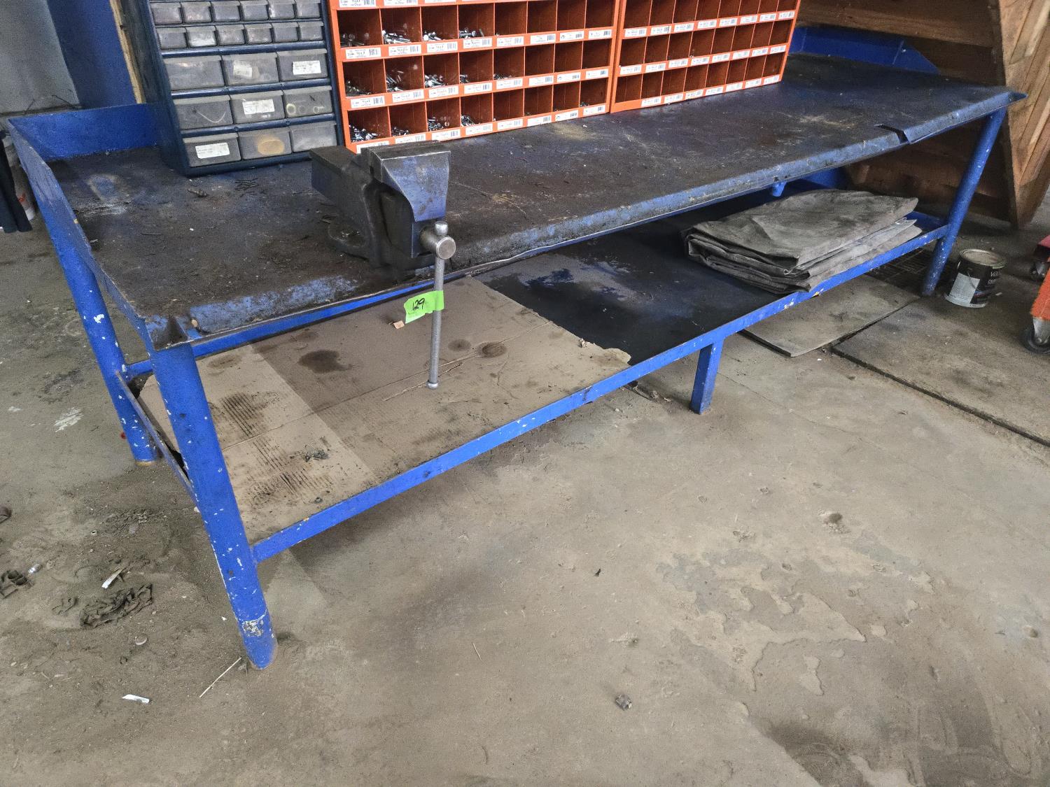 875 10 Ft Metal Teardown Work Bench with 5 Inch Vise, Poly Tarp & Fender Cover