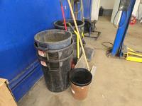 862 (7) Garbage Bins, (2) Brooms & (2) Dust Pans