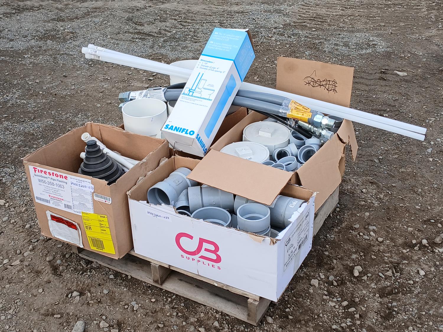 (4) boxes PVC plumbing pipe adapters, (1) extender, (5) ultraflo gas lines, (3) 3/4 inch tubes