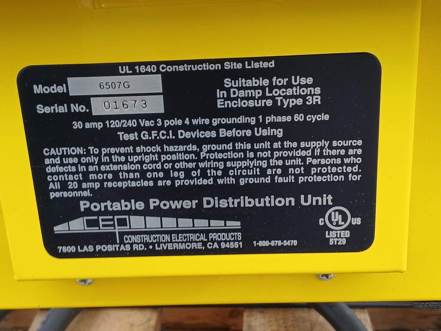 1392 Construction Electrical Products 6507G Power Distribution Unit (Unused)