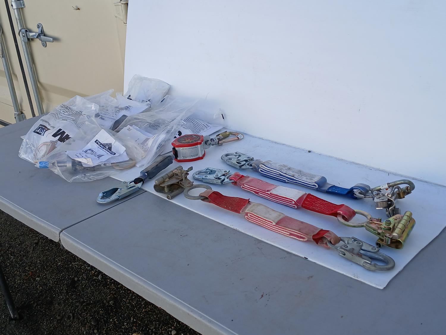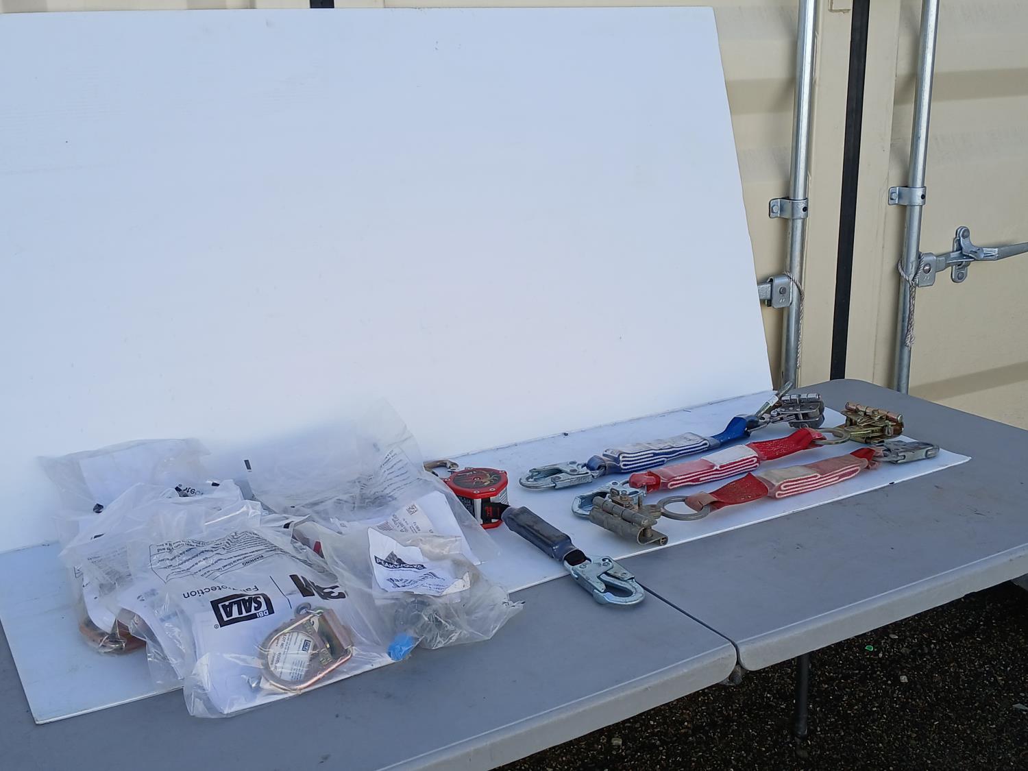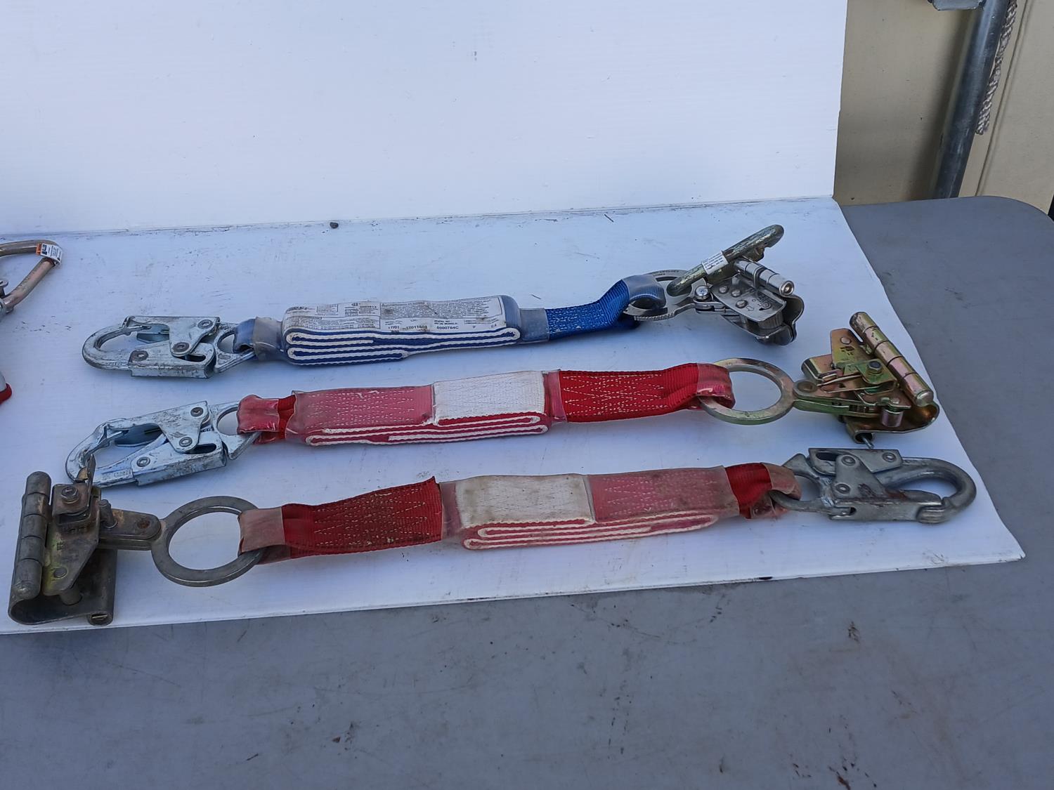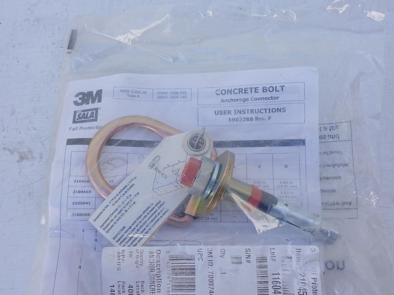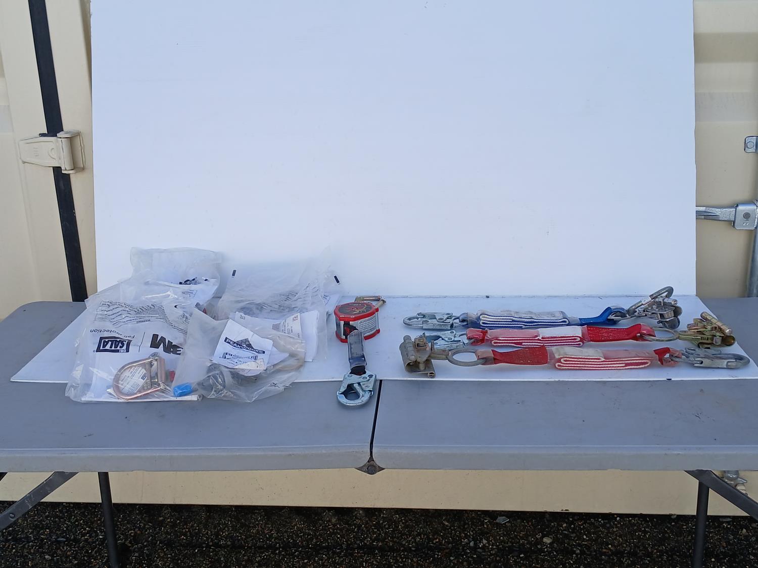 (7) 3 M Concrete bolt Anchorage Connector, (1) Scorpion Personal fall Limiter, (3) Fall Protection Grope grabs.