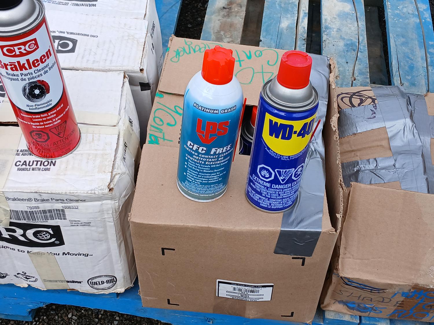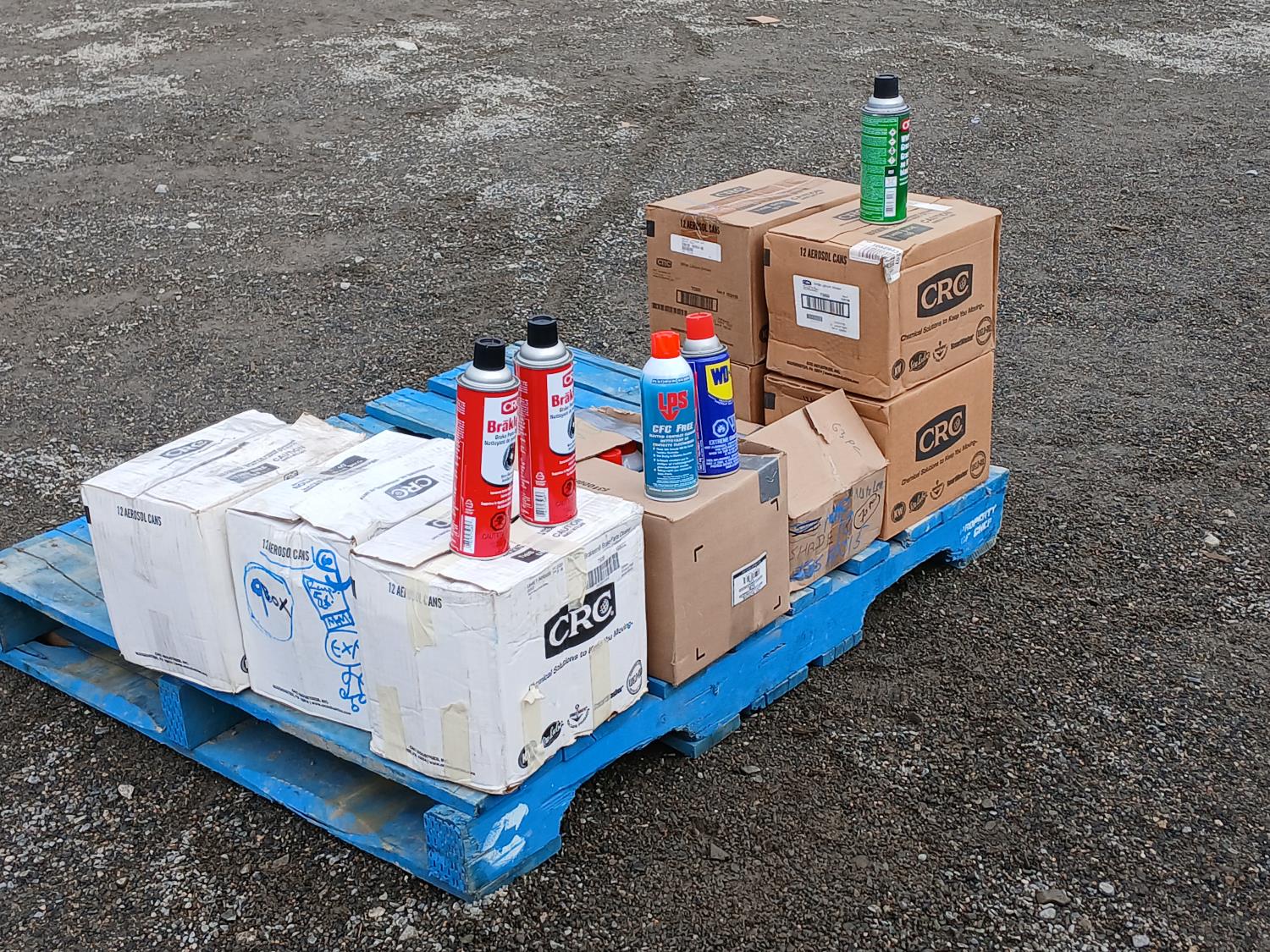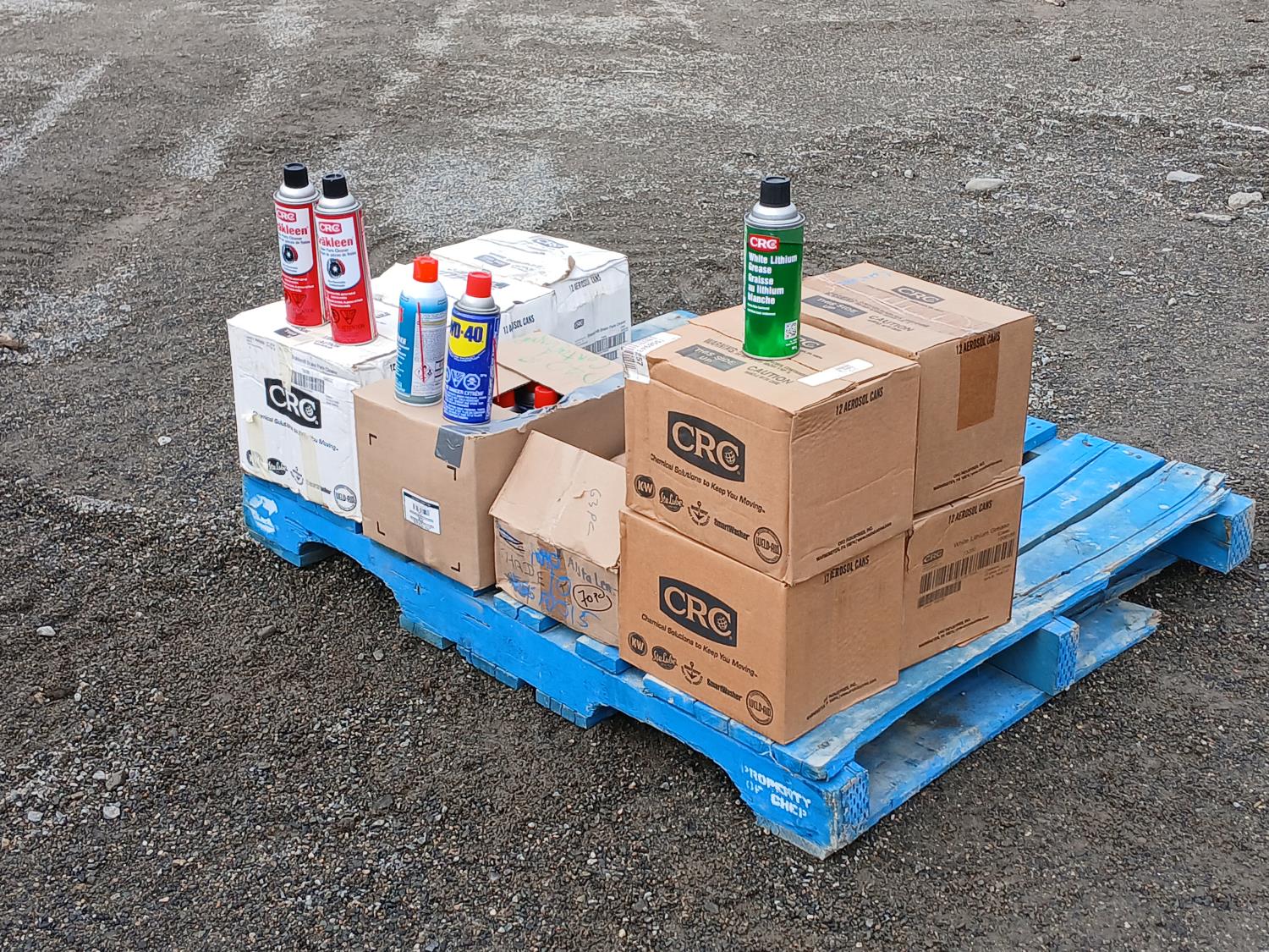 (36) Brakleen Brake/Parts cleaner, (58) CRC White Lithium grease, (9) CFC Electro Contact cleaner, (11) WD40 Multi use product.