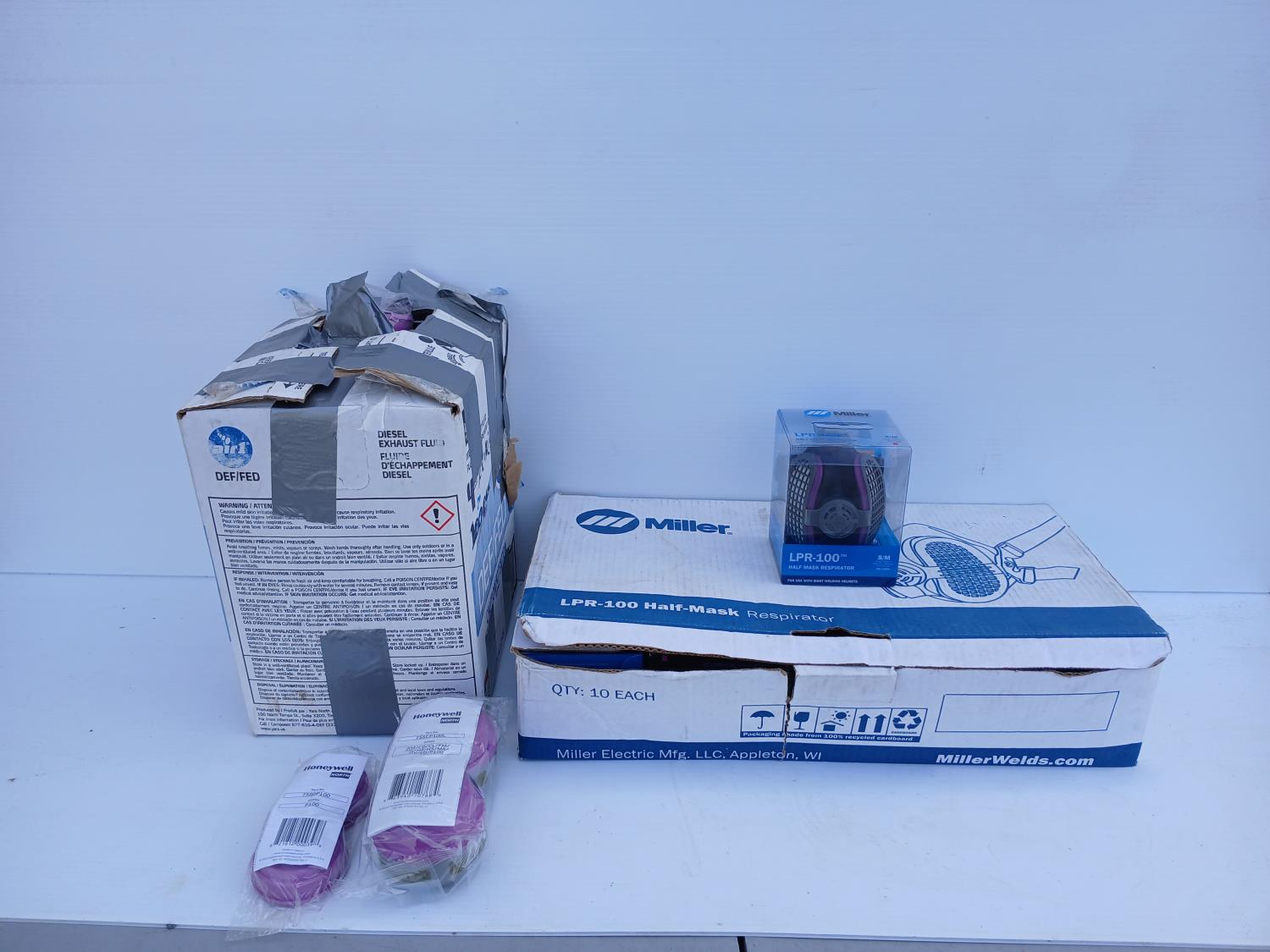 (10) Miller LPR 1/2 Mask Respirators, (1) box (multiple sizes) Honeywell Respirator Filters.