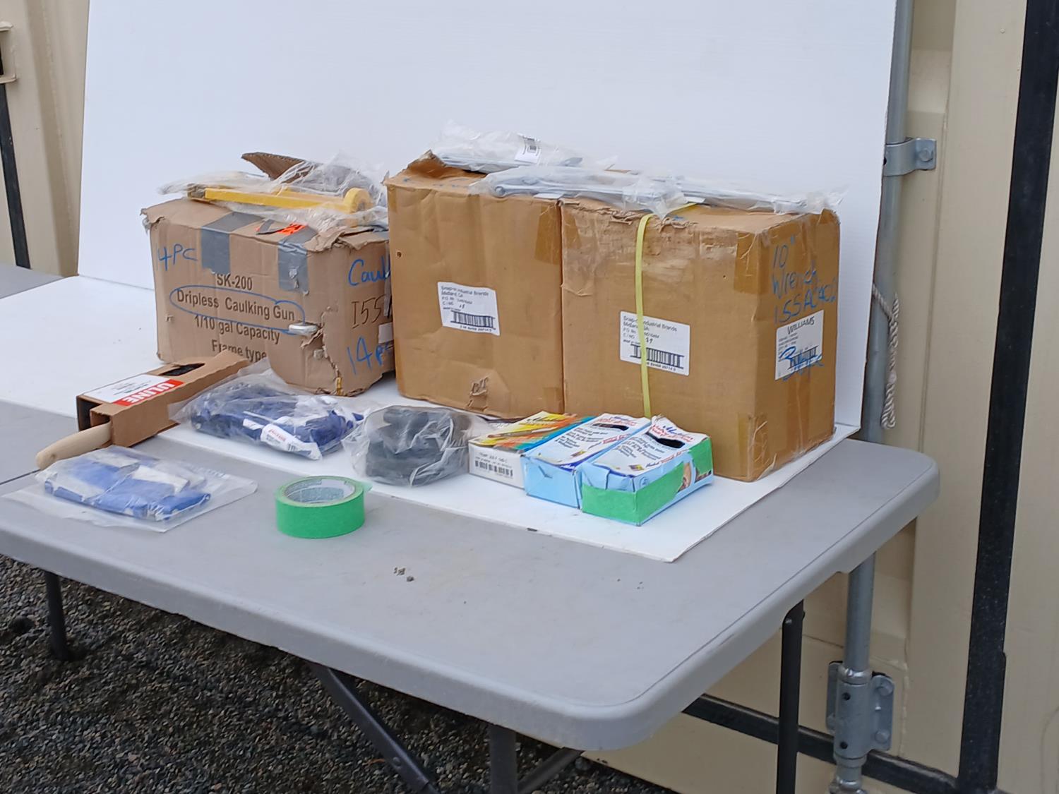 (63) 10 inch Crescent wrench, (14) Caulking guns, (10) 18 inch Bungee cords, (1) 8 inch plastic counter brush, (1) Hygiene replacement kit, (10) Tip cleaner, (1) package Thermomelt heat sticks, (2) Black Markal Paint Markers.