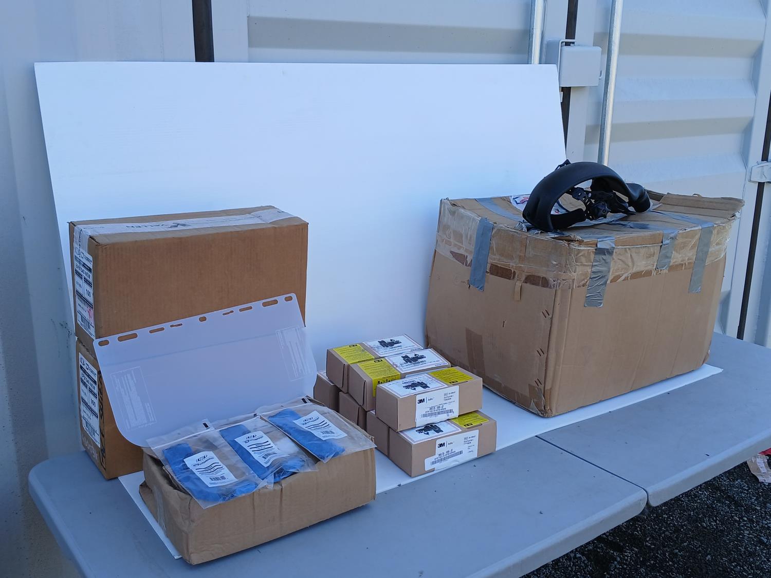(15) Head gear air ducts, (7) 3 M Adflo Lithium ion batteries, (100) Dynamic sweatbands, (200) Dynamic 8 inch x15.5 inch face shields.