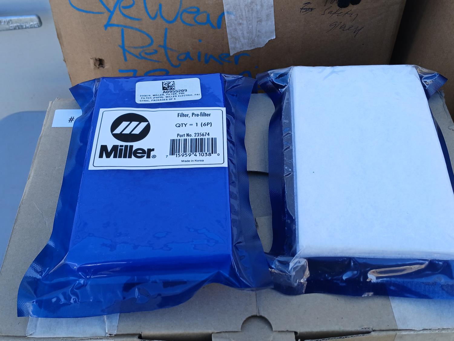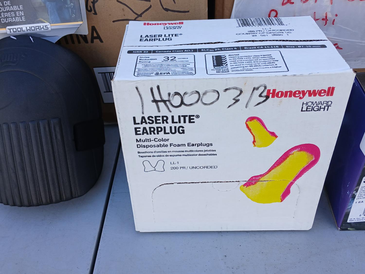 (60) pairs Honeywell UVEX Safety eye wear, (20) pairs Honeywell UVEX grey lense safety eye wear, (5) 3MS Adflo PAPR Smart Chargers for Lithium batteries. (600) pairs LaserLite sound reduction ear plugs (reduction rating 32decibles), (32) pairs Kunny durable foam knee pads, (30) Miller Filters/Pre filters. (10) Eyewear restraints.