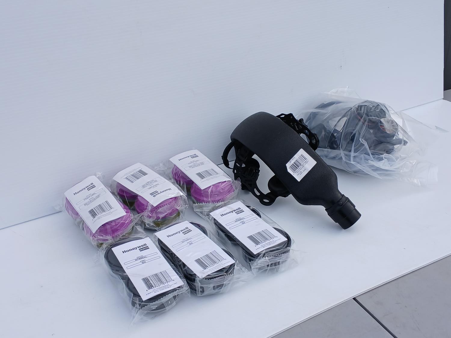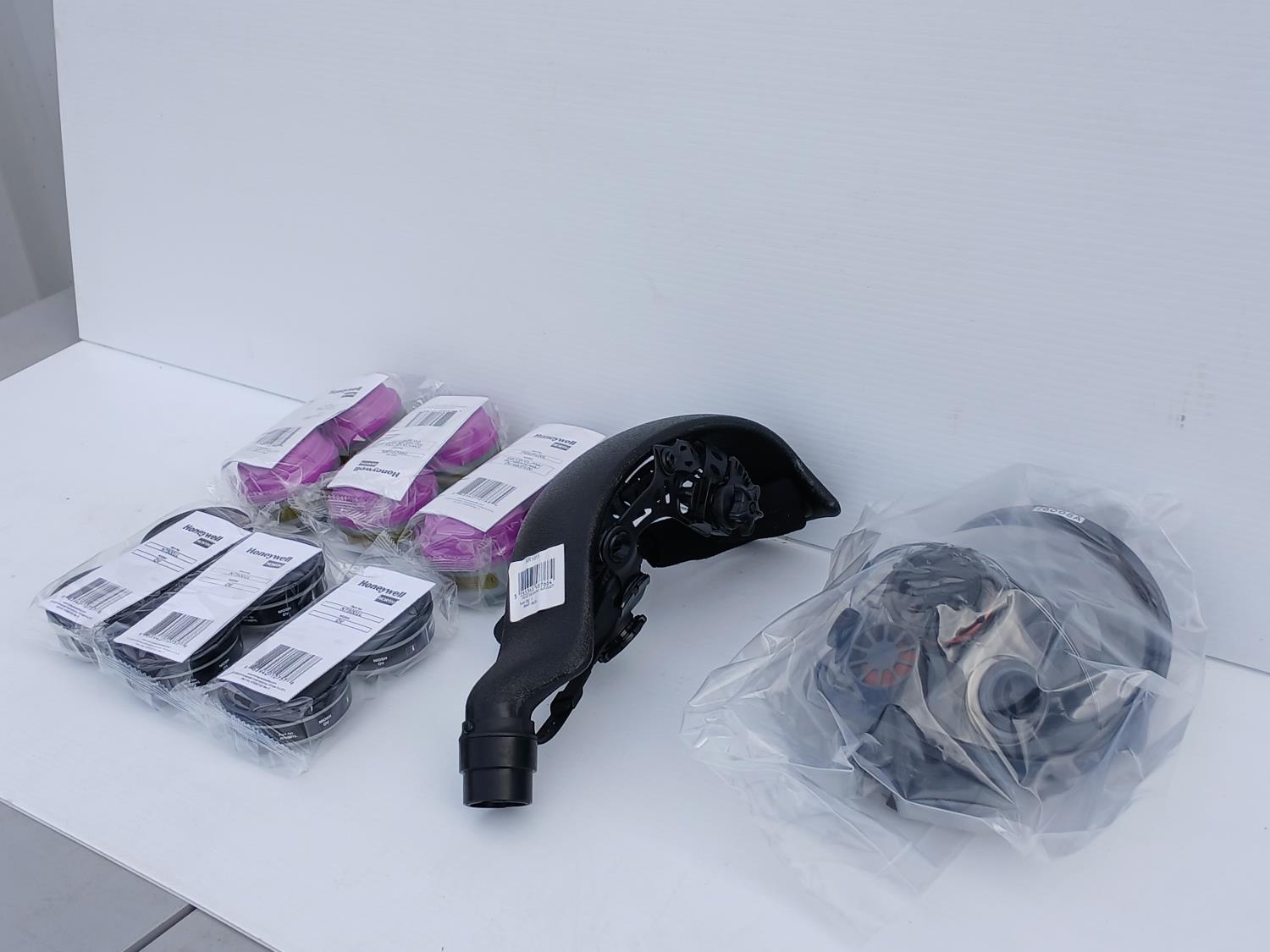 (1) Honeywell Respiratory Protection (760008A), (3) Honeywell 755CP100LRespirator filters, (3) Honeywell N75001L Respirator filters, (1) Headgear Inc Air duct.