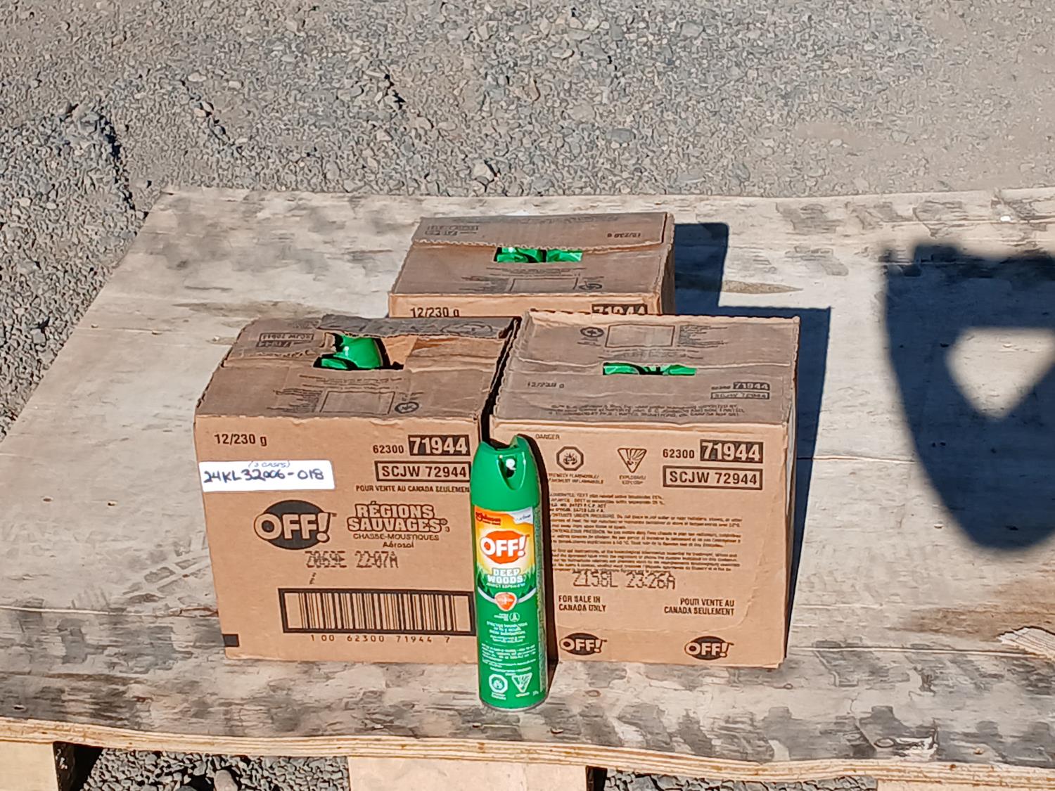 (3) cases Deep Woods insect repellent. 8 hrs protection for Mosquitoes. (12 cans per case)