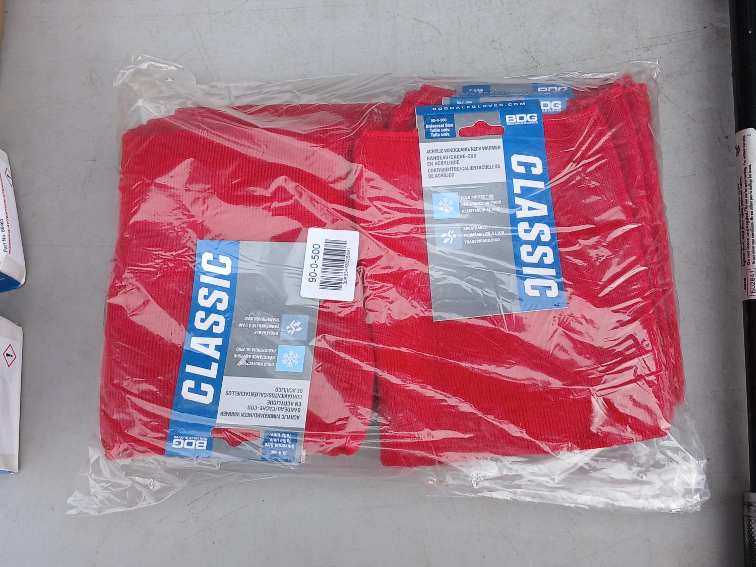 (6) pairs Watson 3 M oil/cut/impact resistant gloves, (1) Lufkin 100 ft measuring tape, (6) boxes Thermomelt heat sticks, (3) (multiple sizes) Avenger High visibility coveralls, (6) Dynamic neck warmers, (4) Walter 6 inch x 5/8 inch -11 40 grade enduro flap disc, (1) CSA propane tiger torch, (10) cans Frontiersman bear spray with 4 holsters.