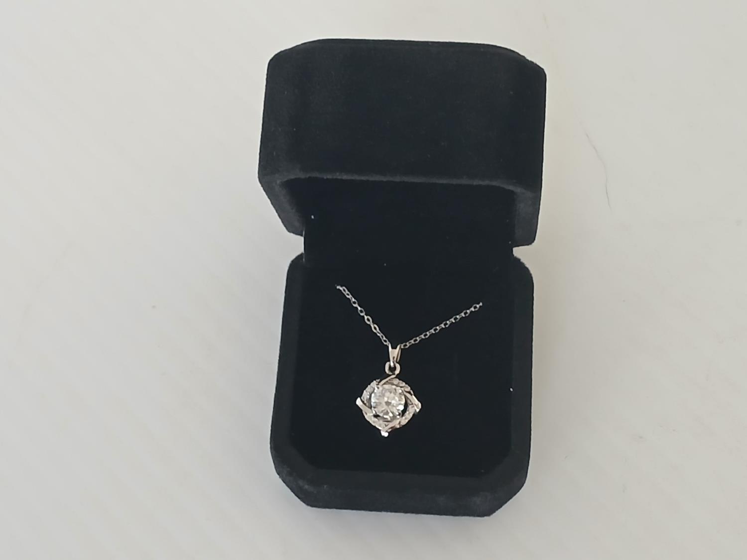 1.0ct Moissanite Diamond Atomic Necklace, mounted in 925 Sterling Silver with White Gold overlay.