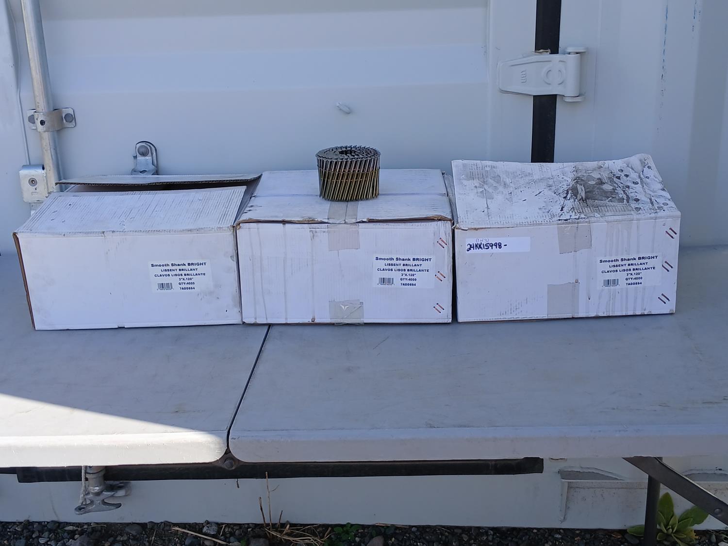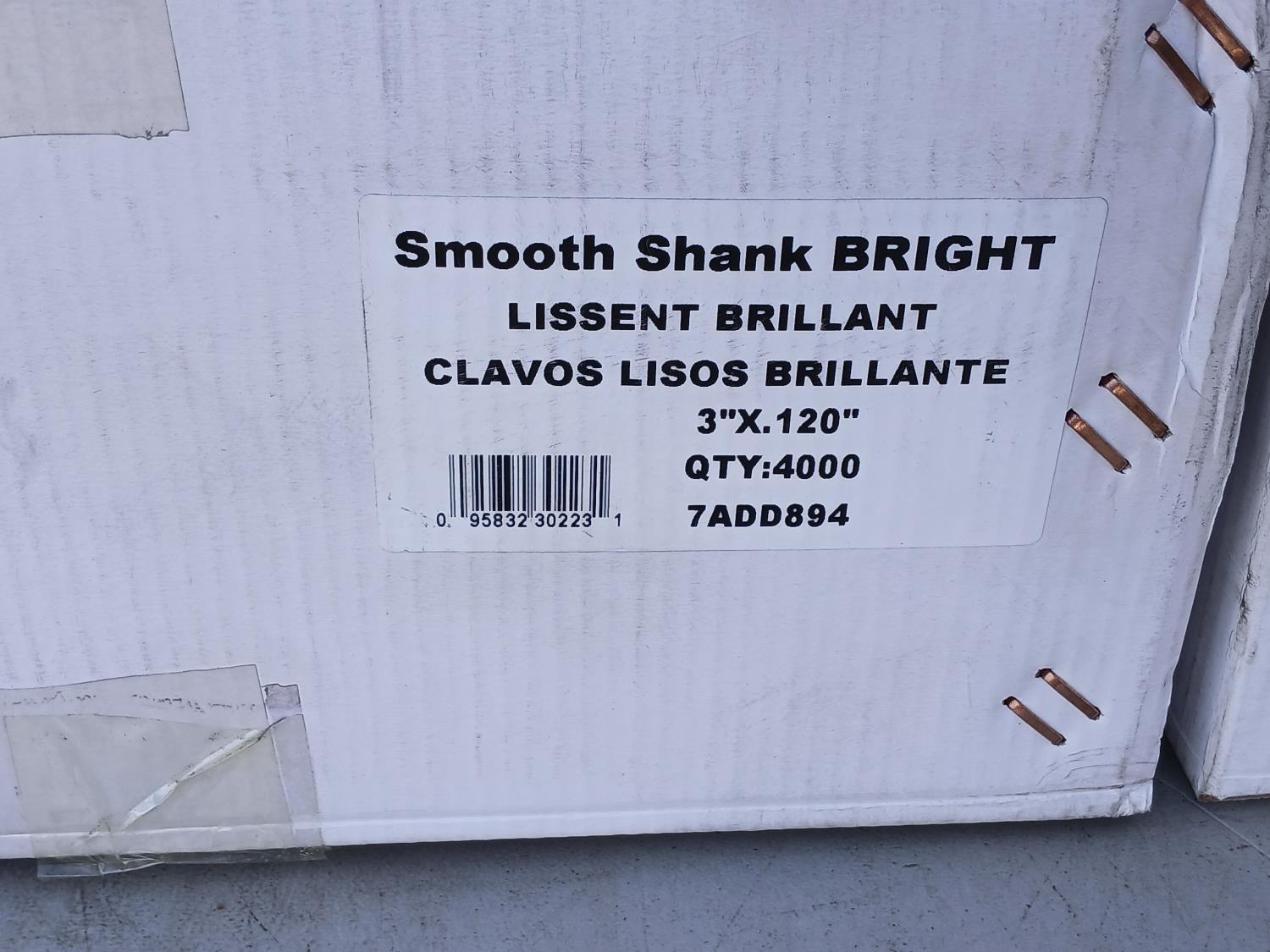 (3) boxes 3 inch x 120 inch 7ADD894 Smooth Shank Bright nails. (Qty 4000/box)