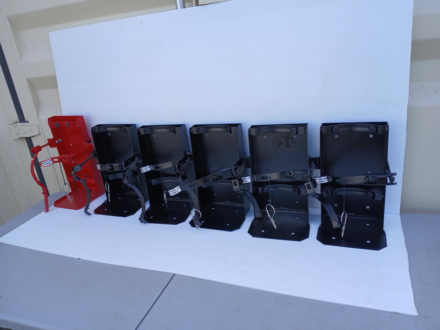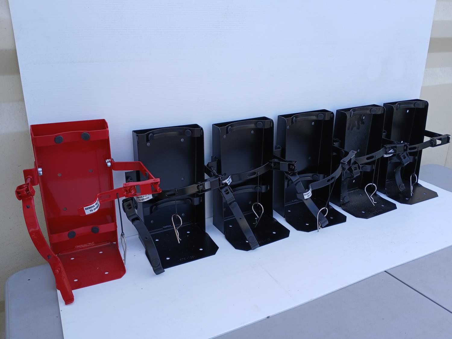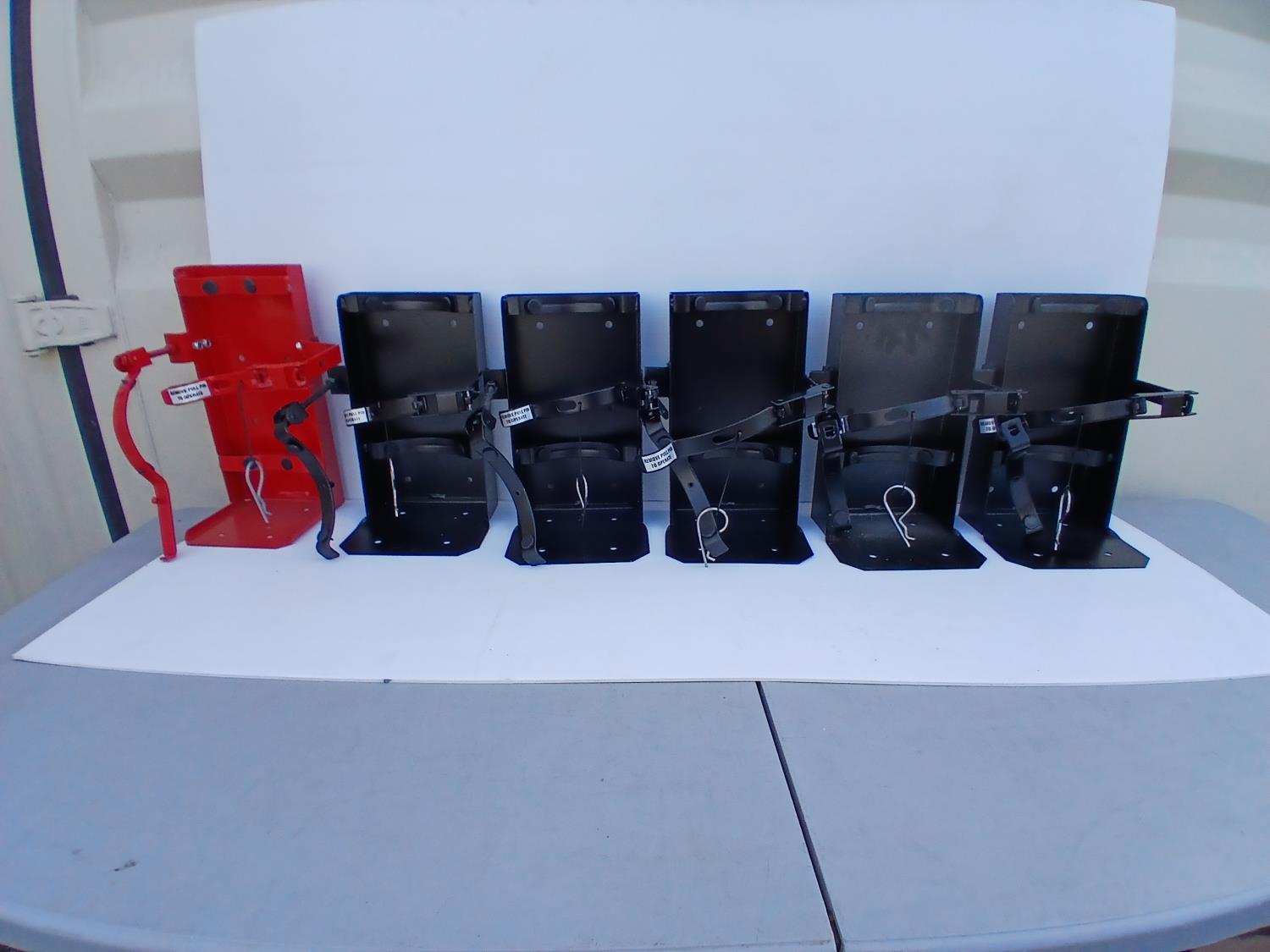 (5 Black) (1 Red) Vehicle mount fire extinguisher brackets.