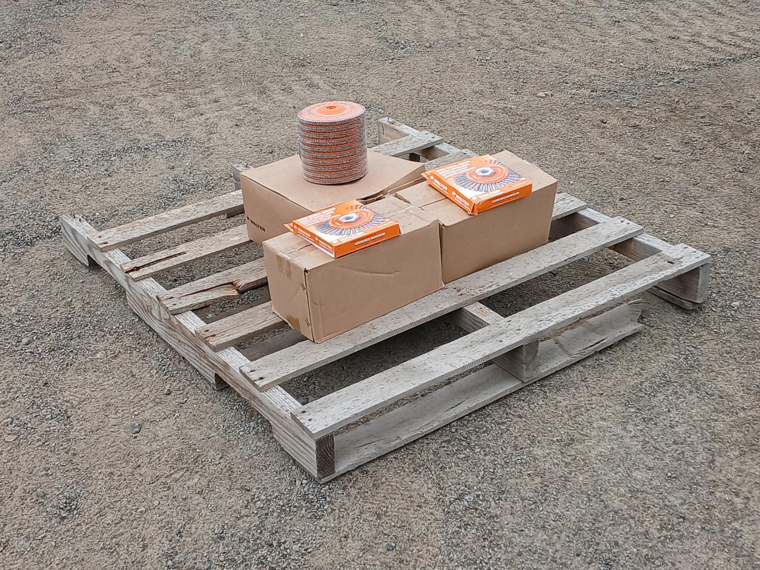 1 case (40) Walter 6 inch x 5/8 inch spin-on flap discs, 2 boxes (20) Walter 6 inch x 3/8 inch x 5/8 inch Wire brush discs.