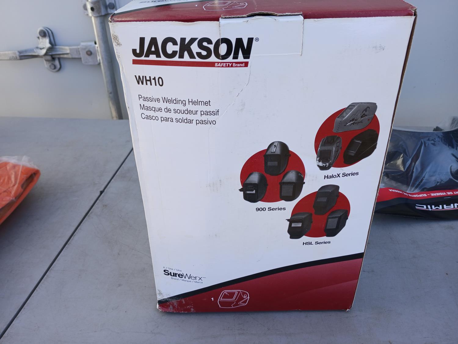 (1) Jackson Welding Helmet, (20) Walter 6 inch x1/4 inch x 5/8 inch Depressed Grinding wheels, (1) Victor Welding handle, (1) PowerWeld Med duty propane regulator, (1) Dynamic helmet visor, (3) size Med Steiner Welding jackets, (6) pairs X Cut Synthetic leather cut/impact resistant gloves.