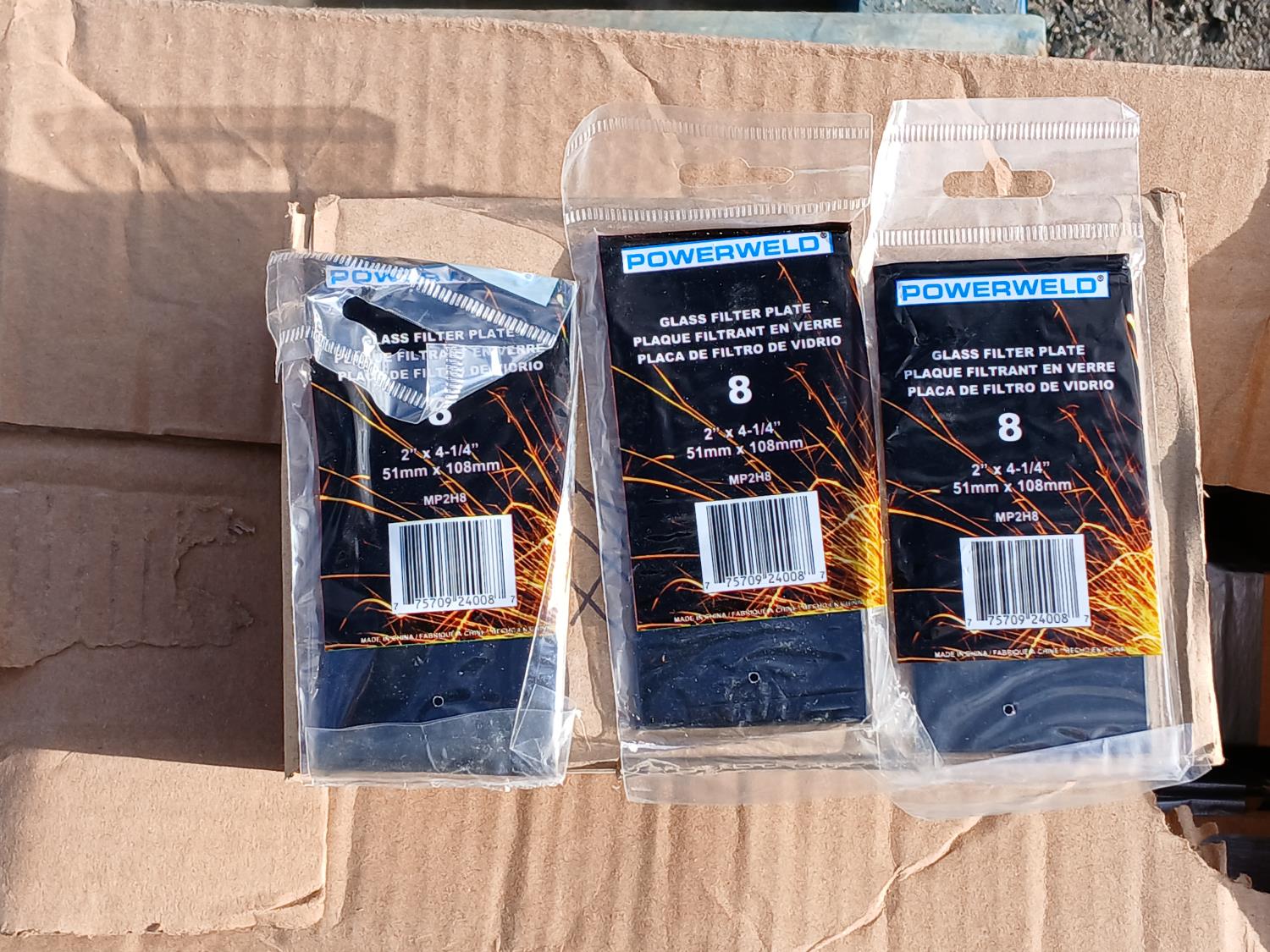 (650) #8 Welding shades, (450) #9 Welding shades, (1000) #10 Welding shades, (12) #8 HD Singles, (200) Face shields.