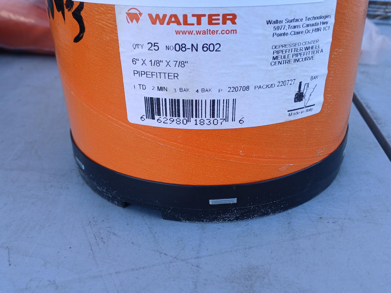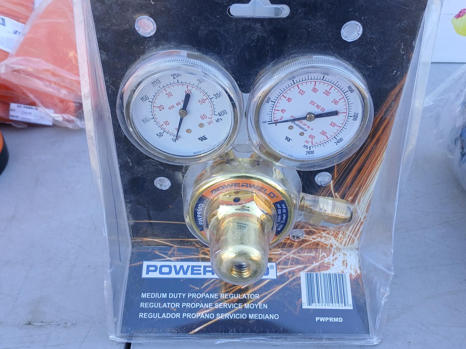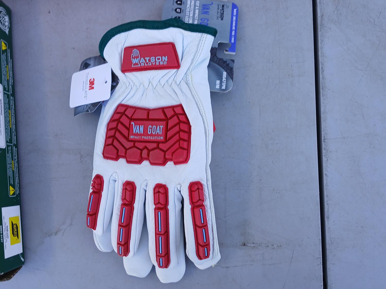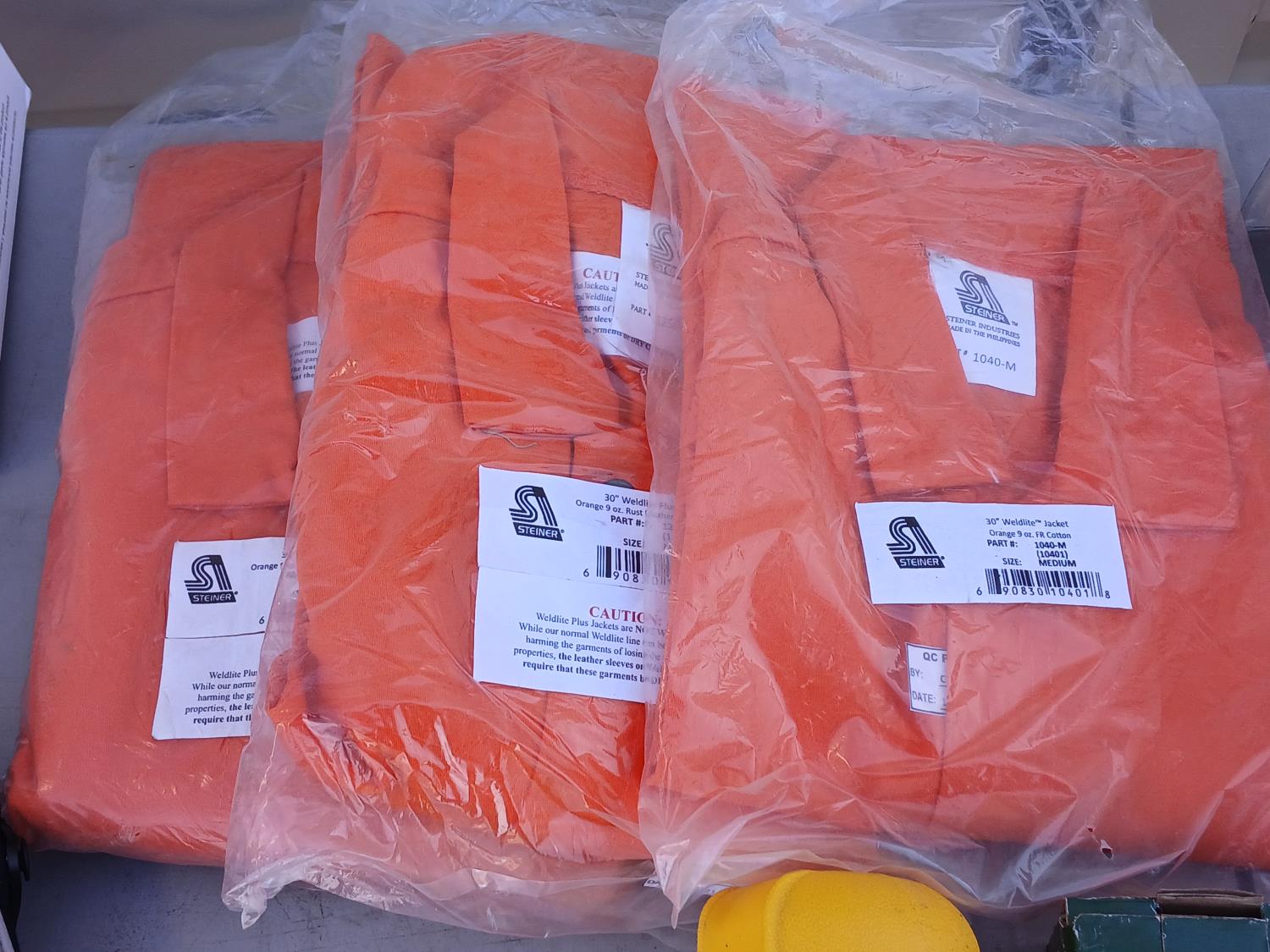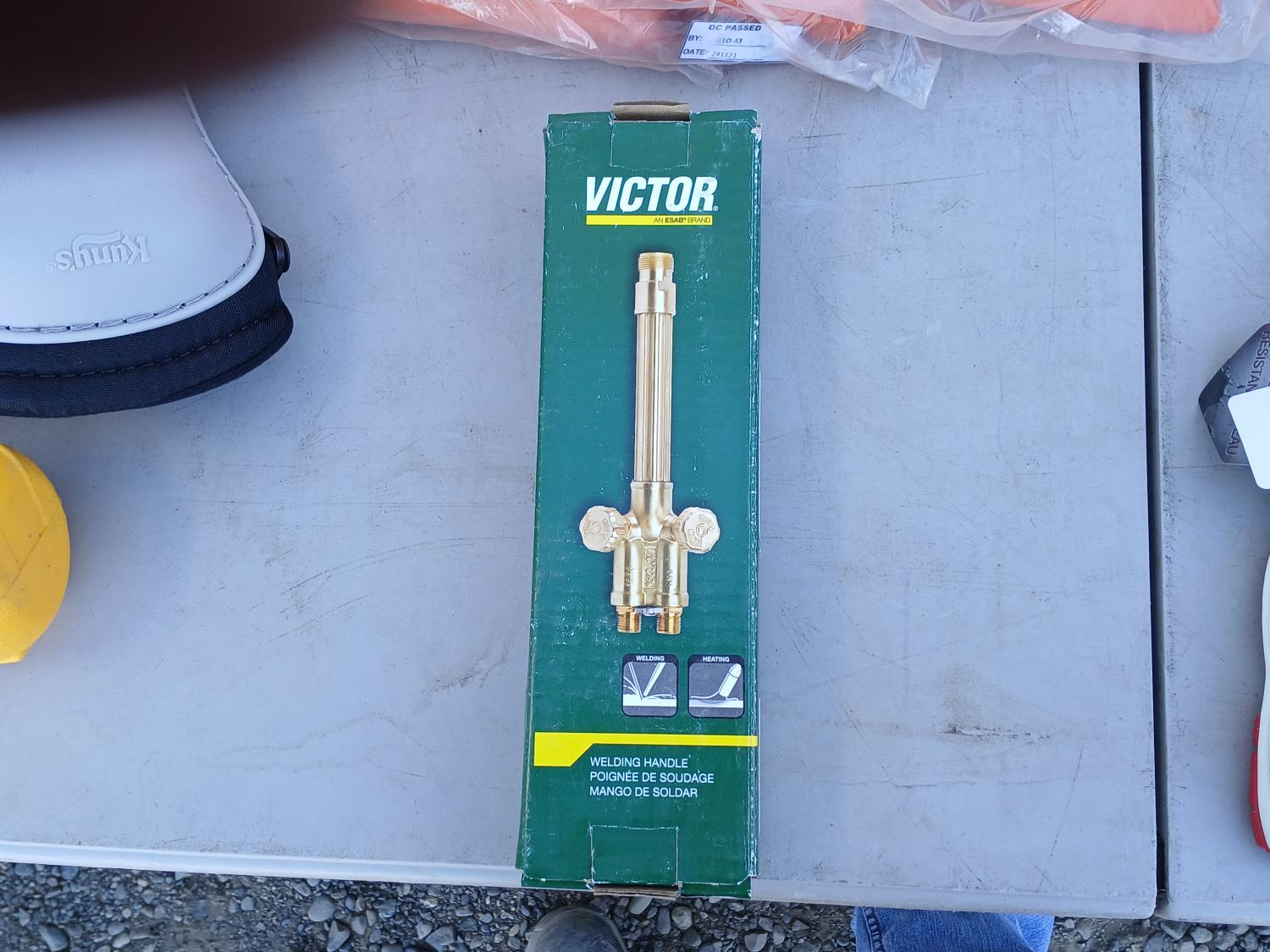 (1) pair Kuny's knee pads, (1) Safe tube, (1) Jackson Welding Helmet, (1) box (200 pairs) Laser lite ear plugs, (1) Victor Welding Handle, (1) Power Pro Med duty propane regulator, (3) (size M) Steiner Welding jackets, (12) pairs BDG HPPE Nitrile coated gloves (impact and cut resistant), (1) pair 3 M Watson Thinsulate gloves (impact and cut resistant), (25) Walter Depressed center Pipefitter wheels (6 inch x1/8 inch x7/8 inch)