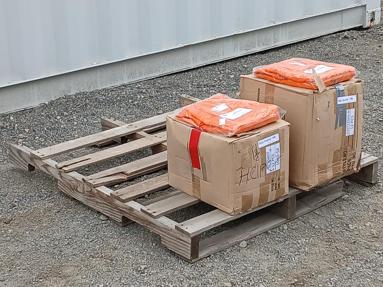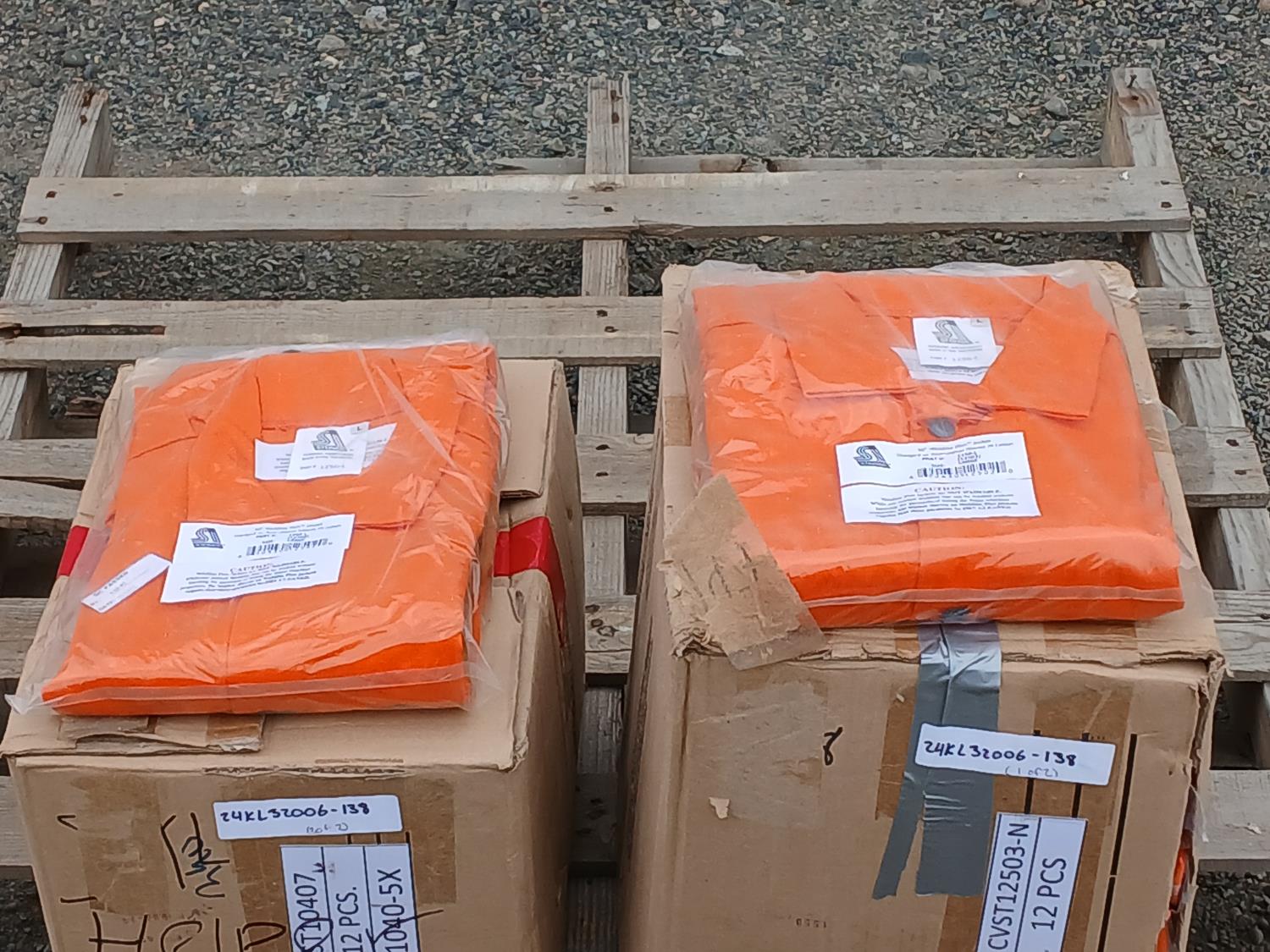 1 box (9) size LG Weldlite Plus leather sleeved welding jackets, 1 box (12) size XL Weldlite Plus leather sleeved jackets.