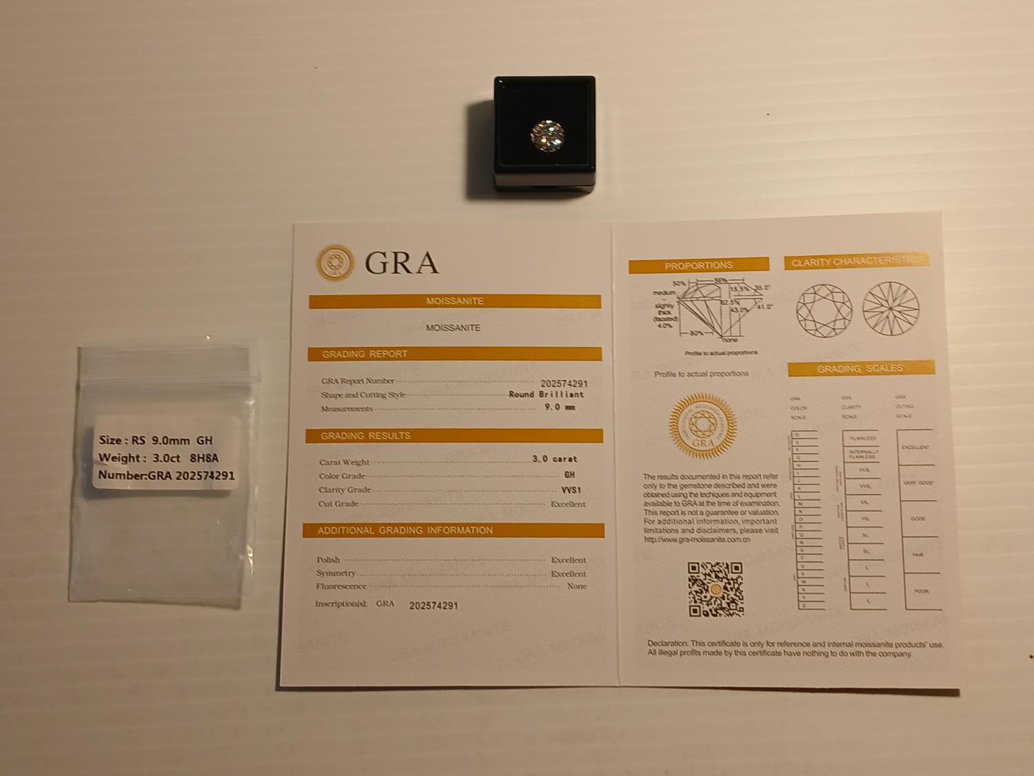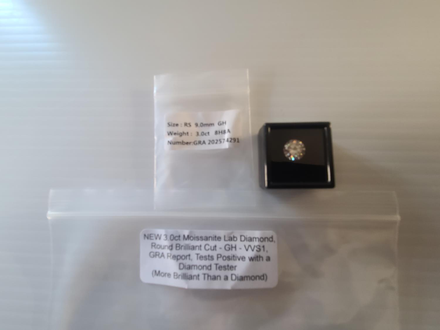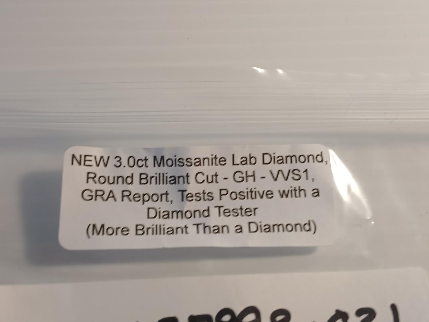 1900 Carsation Designs 3.0Ct Moissanite Lab Diamond, Brilliant Cut (Unused)