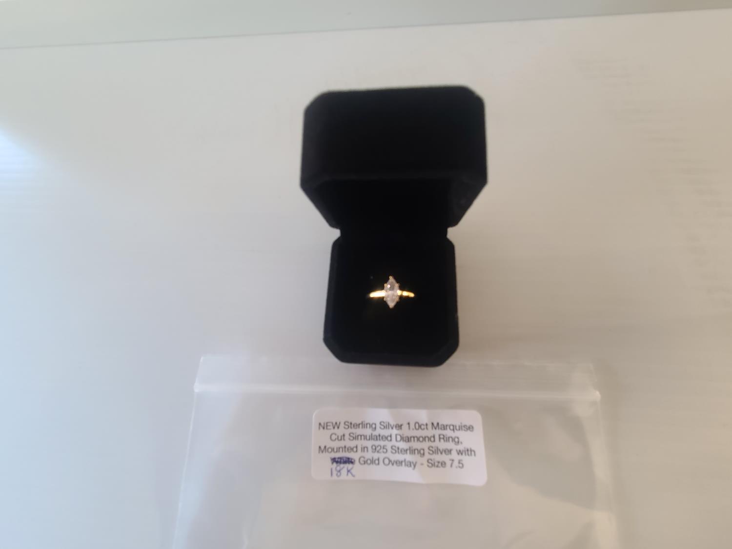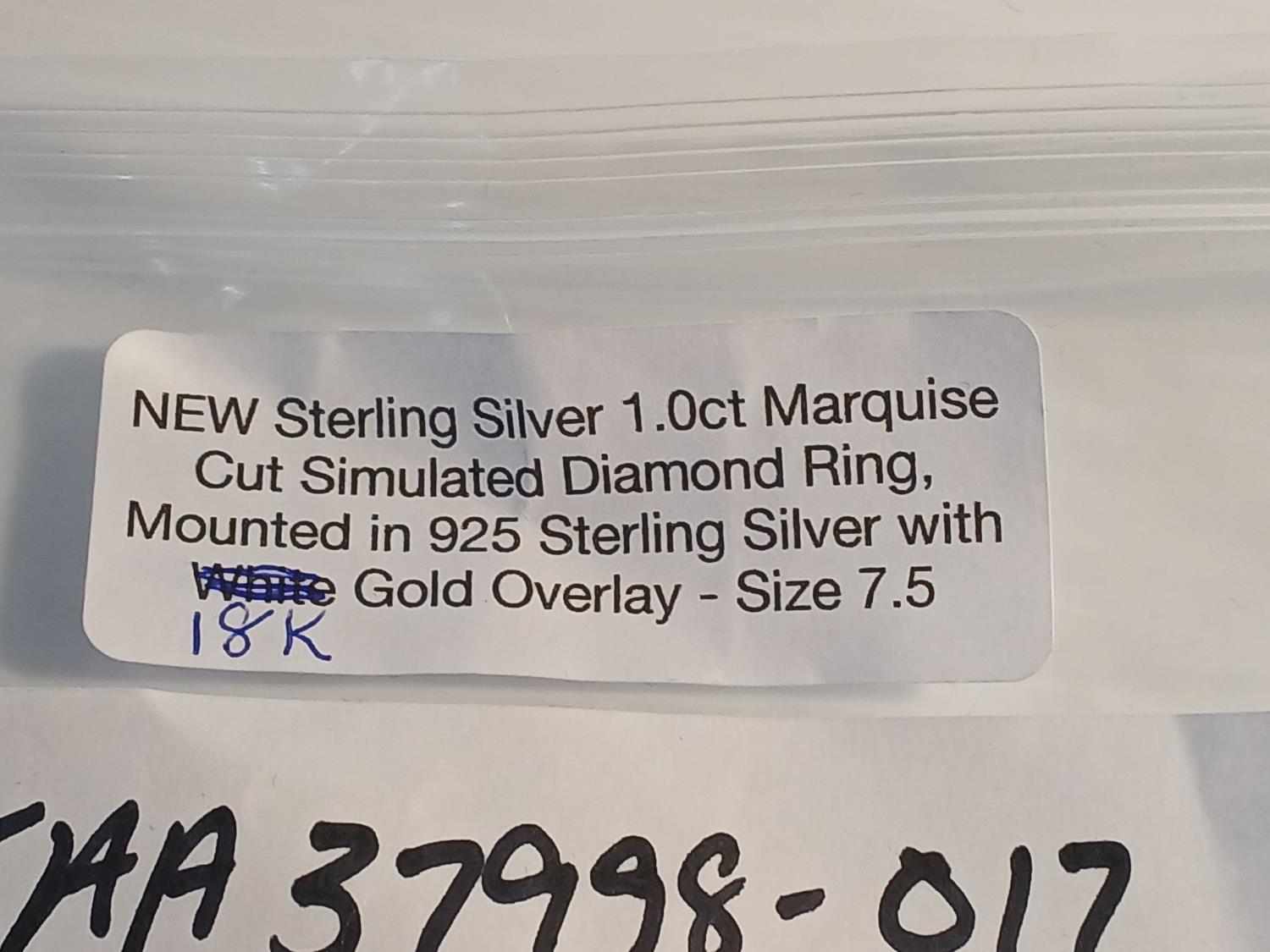 1896 Carsation Designs Sterling Silver 1.0 ct Marquise Cut Simulated Diamond Ring (Unused)
