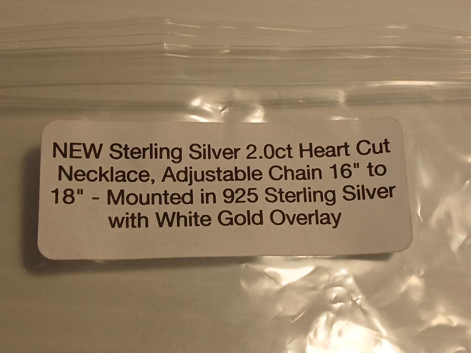 1886 Carsation Designs Sterling Silver 2.0Ct Heart Cut Necklace (Unused)