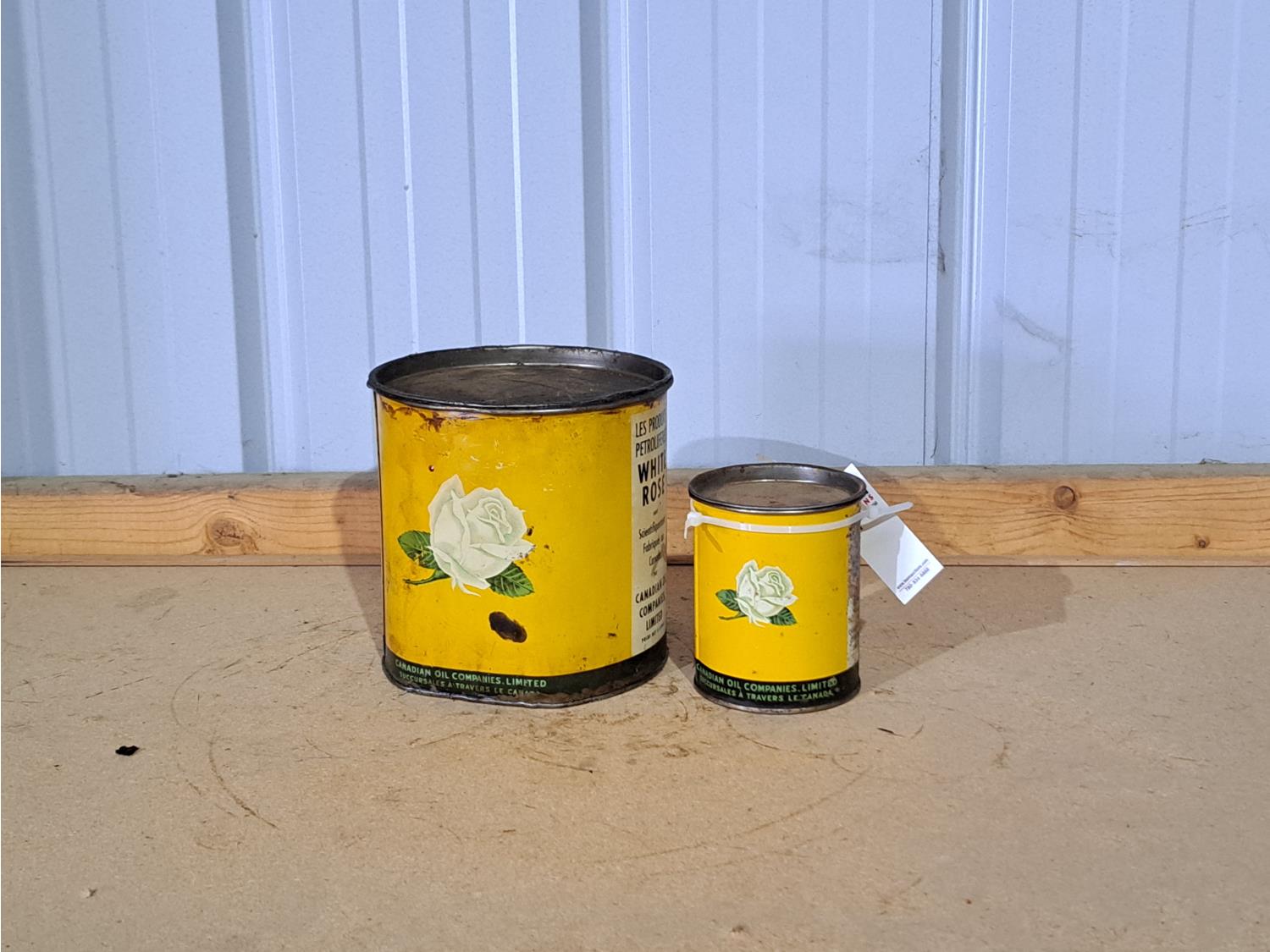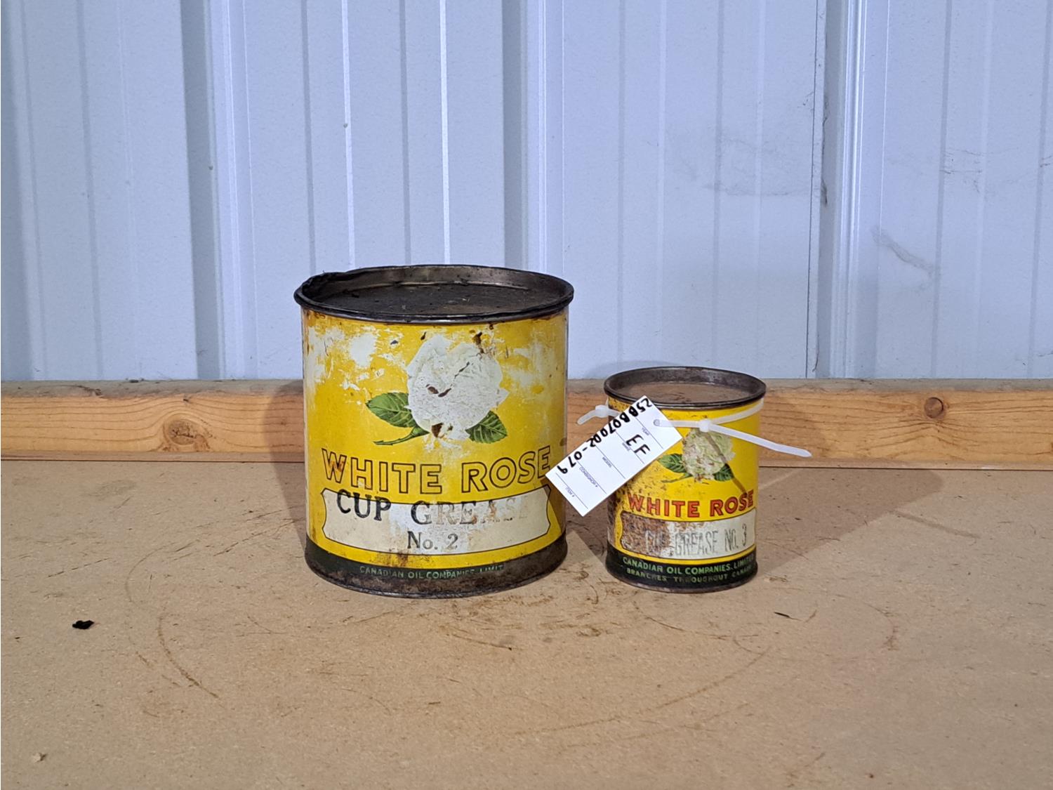 560 (2) Vintage White Rose Oil Cans