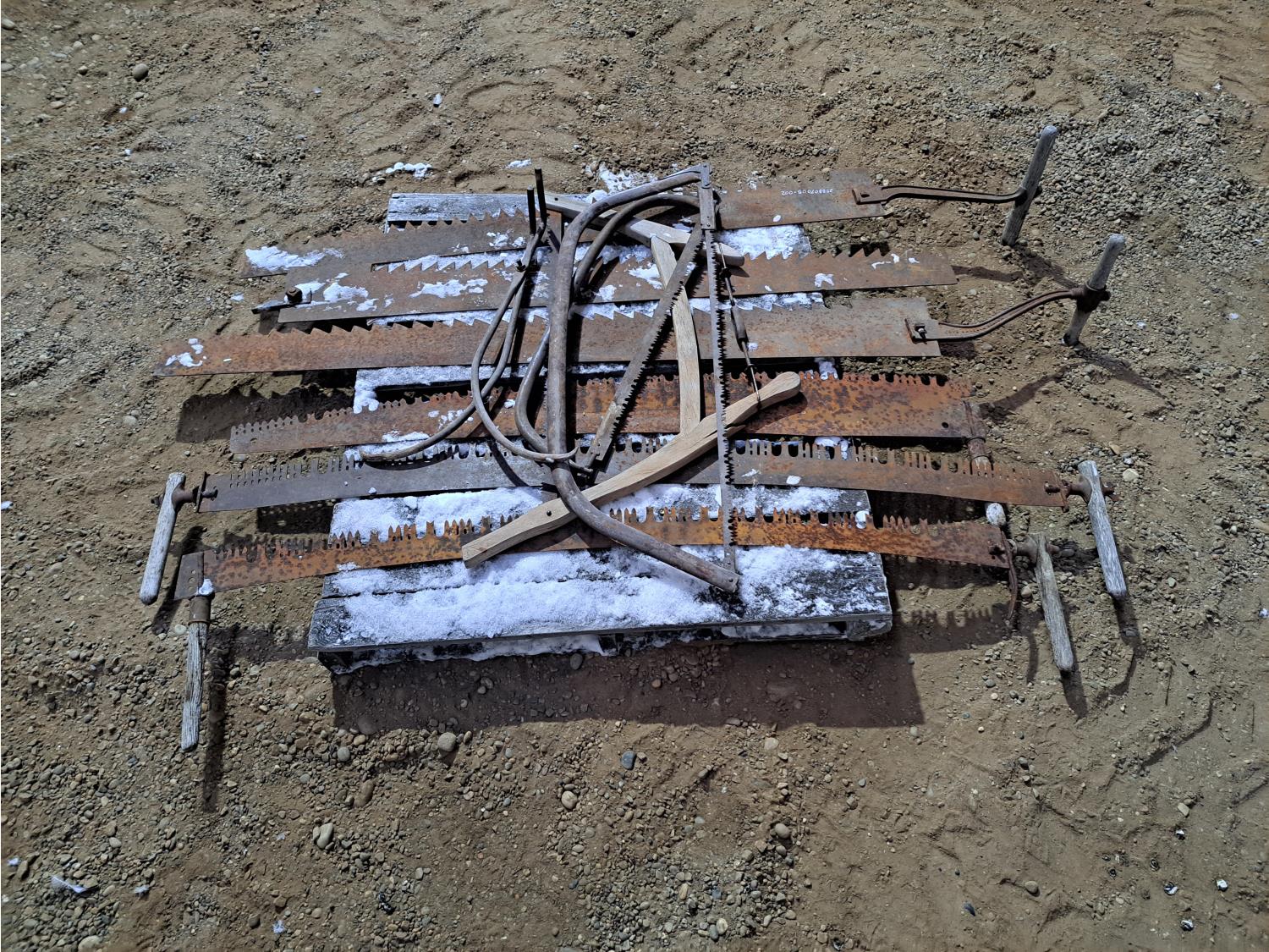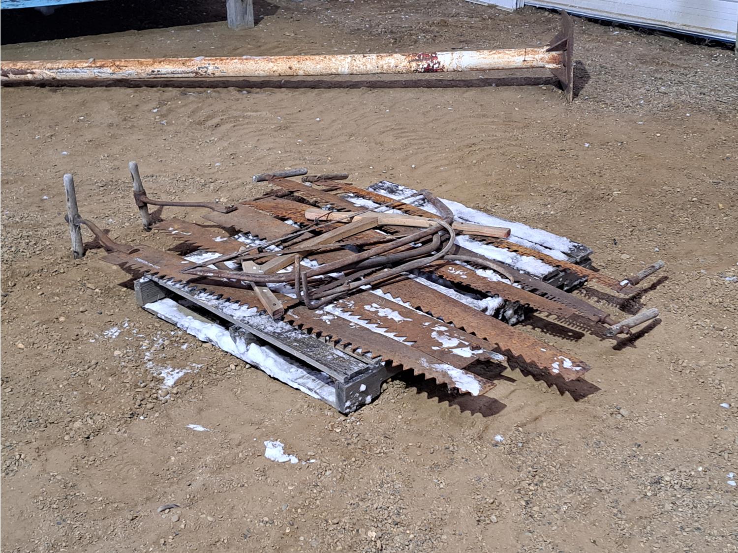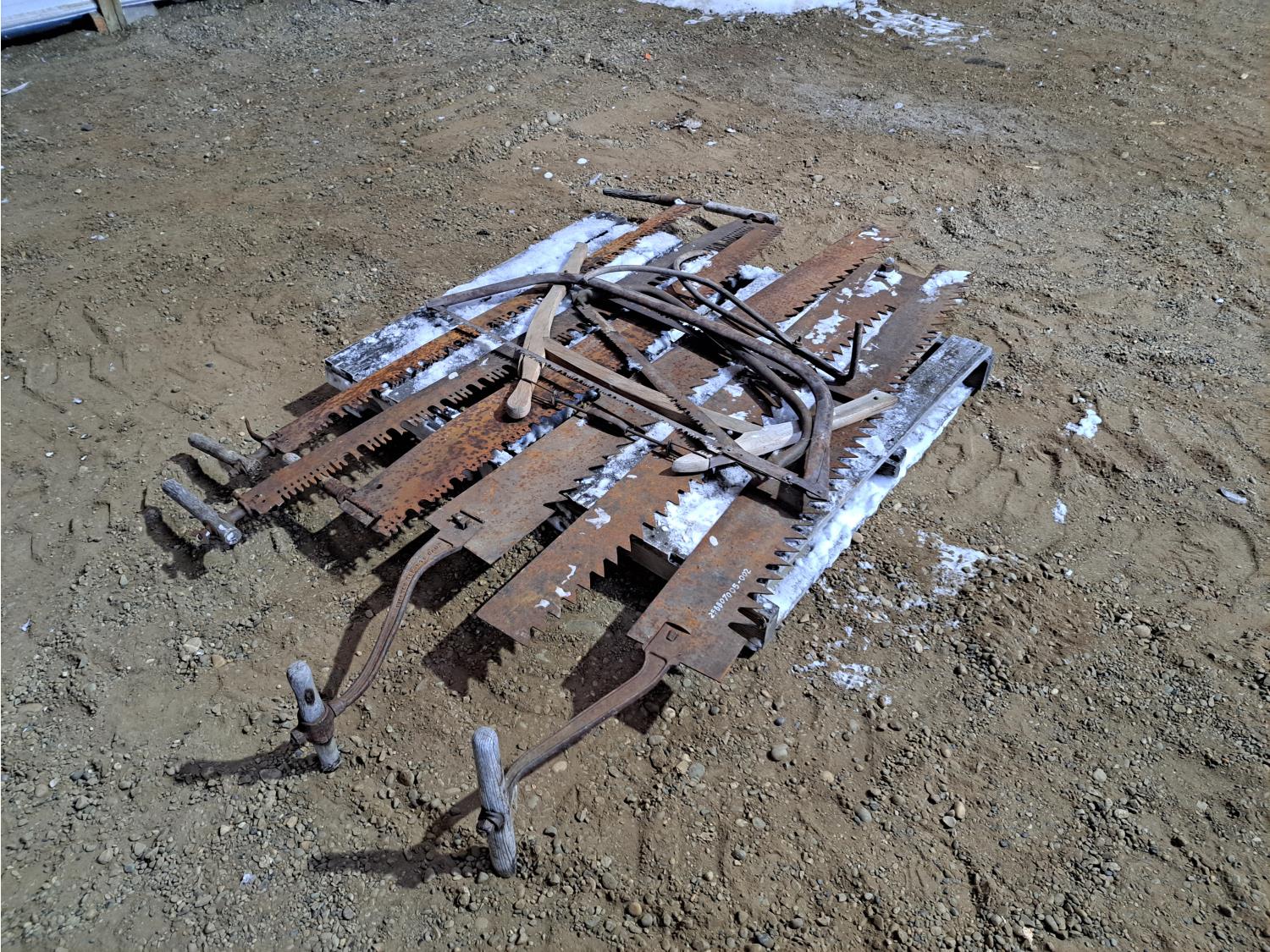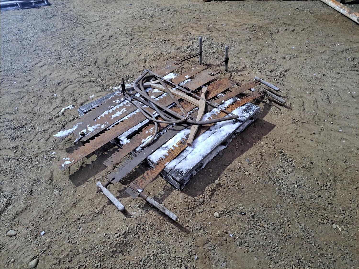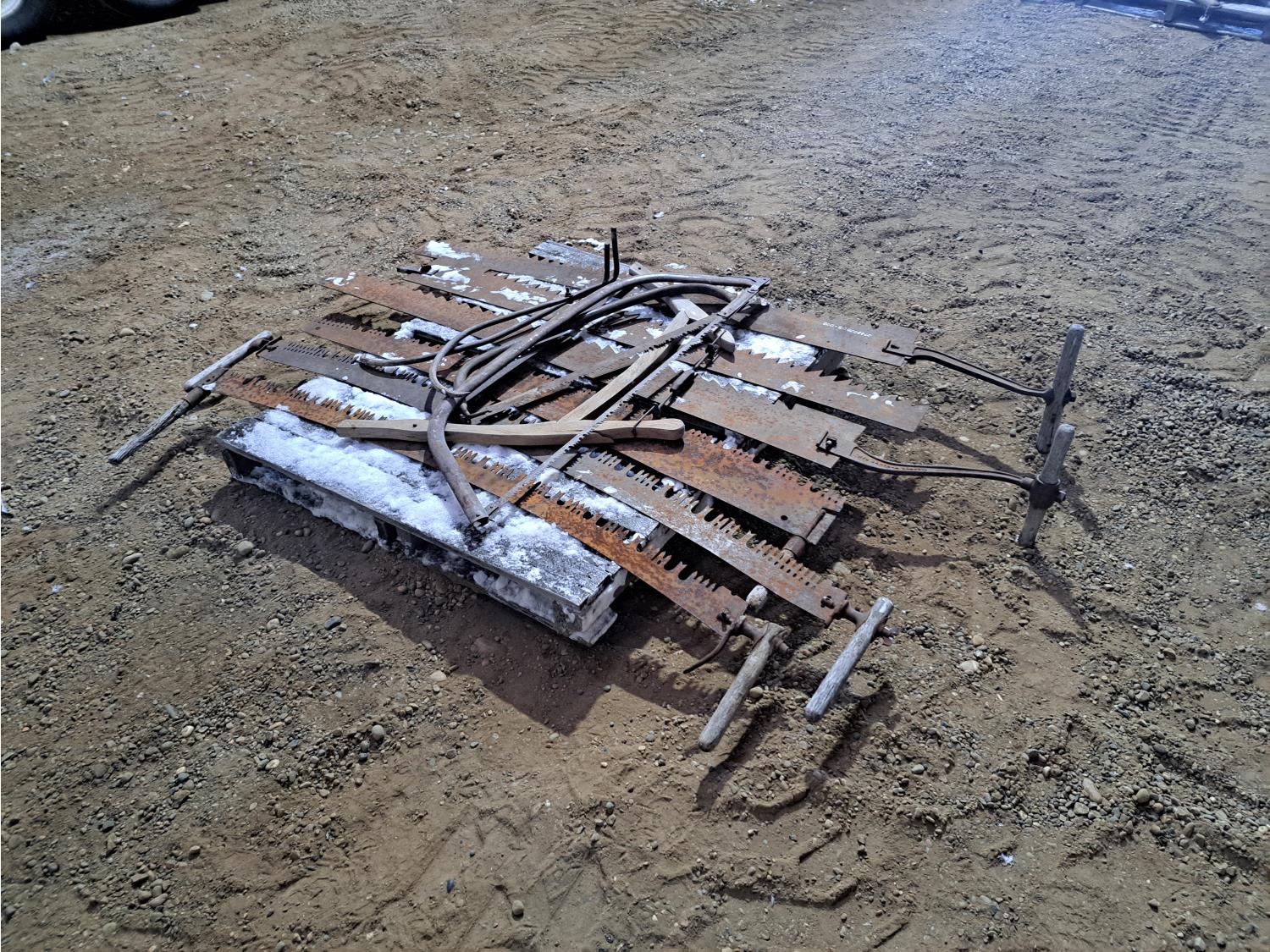 (3) ice saws, (4) various cross cut saws, (2) swede saws