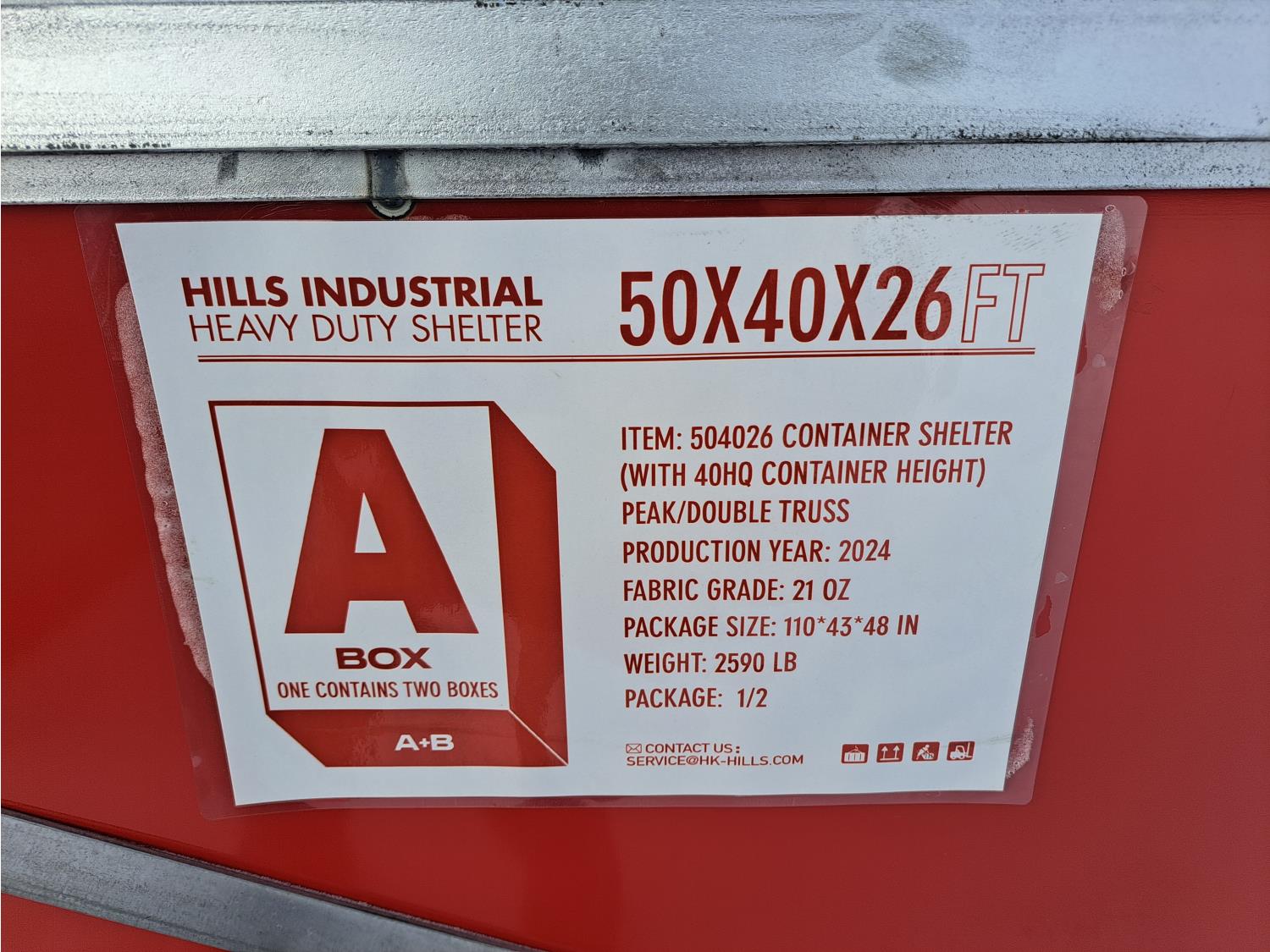 101 Hills Industrial 50 Ft W X 40 Ft L X 26 Ft H Heavy Duty Container Shelter (Unused)