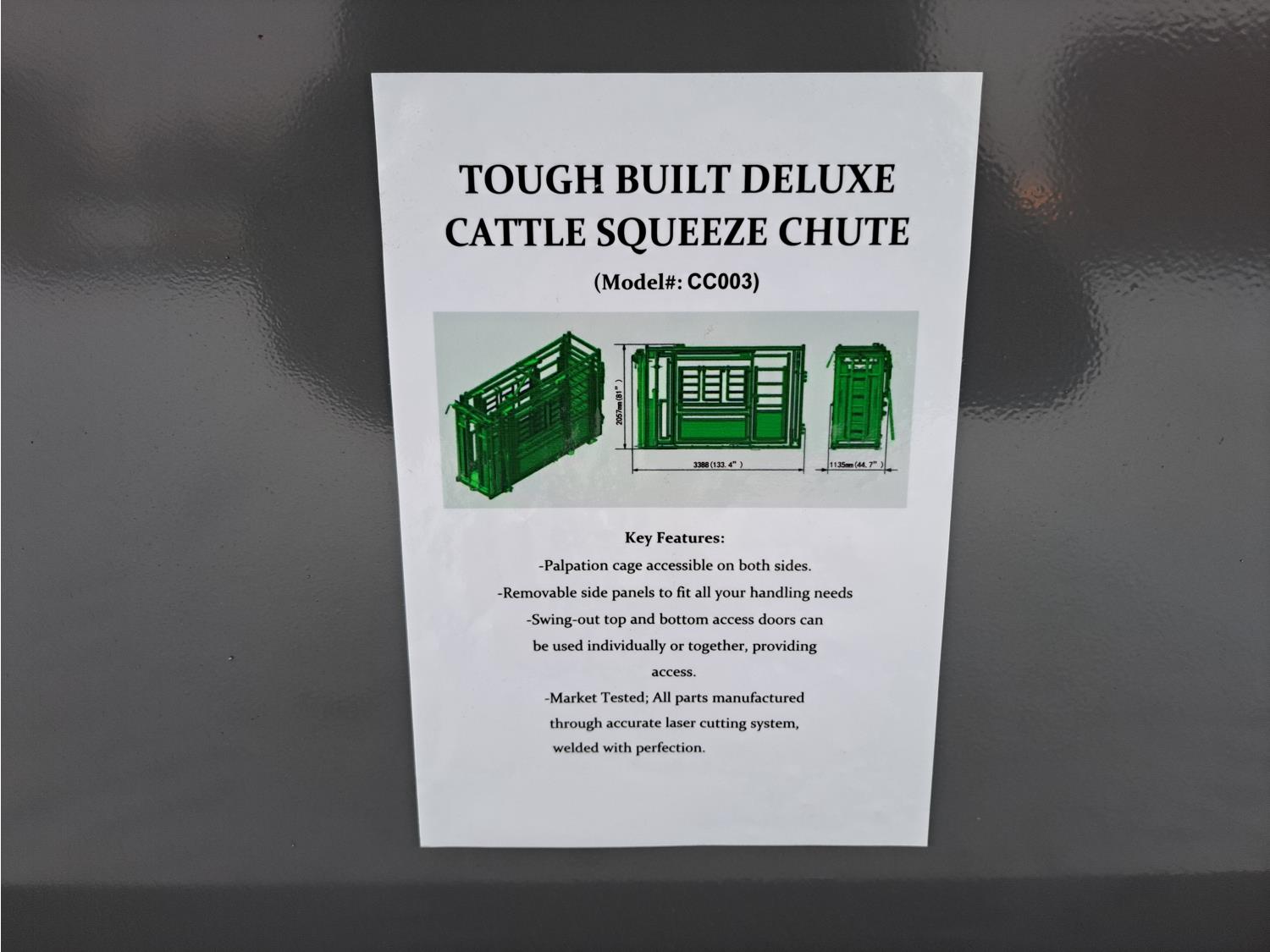 148 Tough Built Deluxe Cattle Squeeze Chute (Unused)