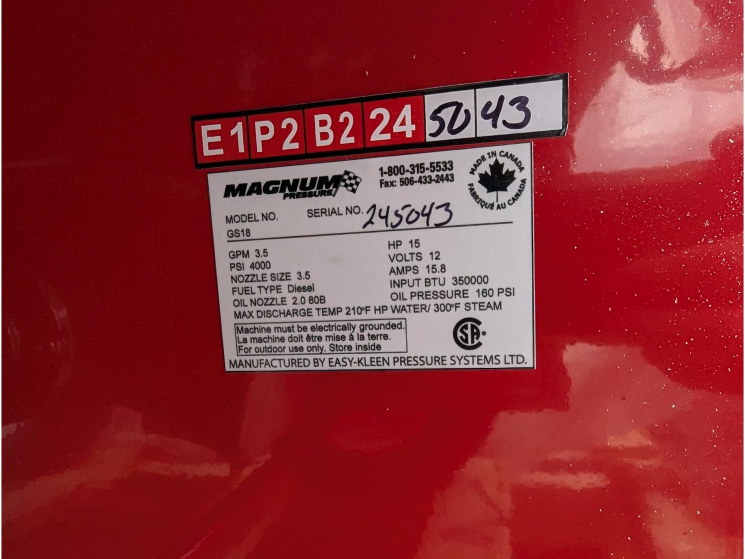 4000 PSI, 15 HP electric start gas engine, 30 ft hose.