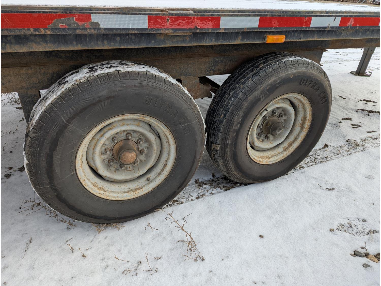 96 inch wide deck, 24 inch beaver tails, wood deck, electric brakes, spring suspension, ball hitch, rub rails, stake pockets, 7000 lb axles, 235/85/R16 tires