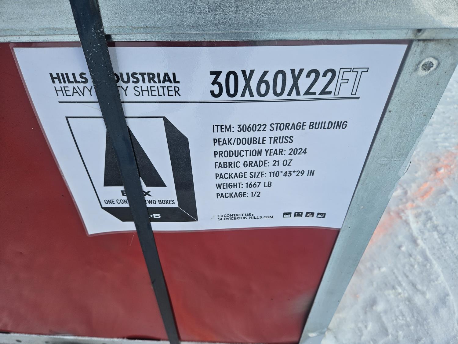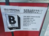 1602 Hills Industrial 30 Ft W X 60 Ft L X 22 Ft H Heavy Duty Shelter (Unused)
