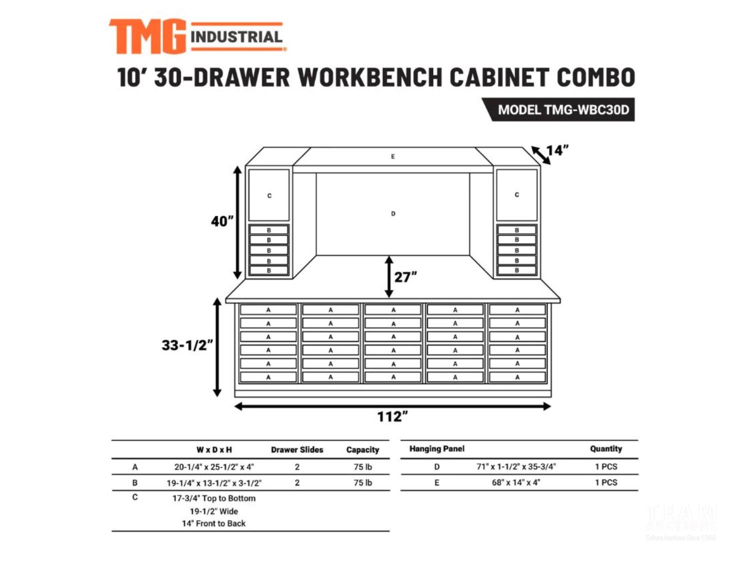 1509 TMG Industrial TMG-WBC30D 10 Ft 30-Drawer Workbench Cabinet Combo (Unused)