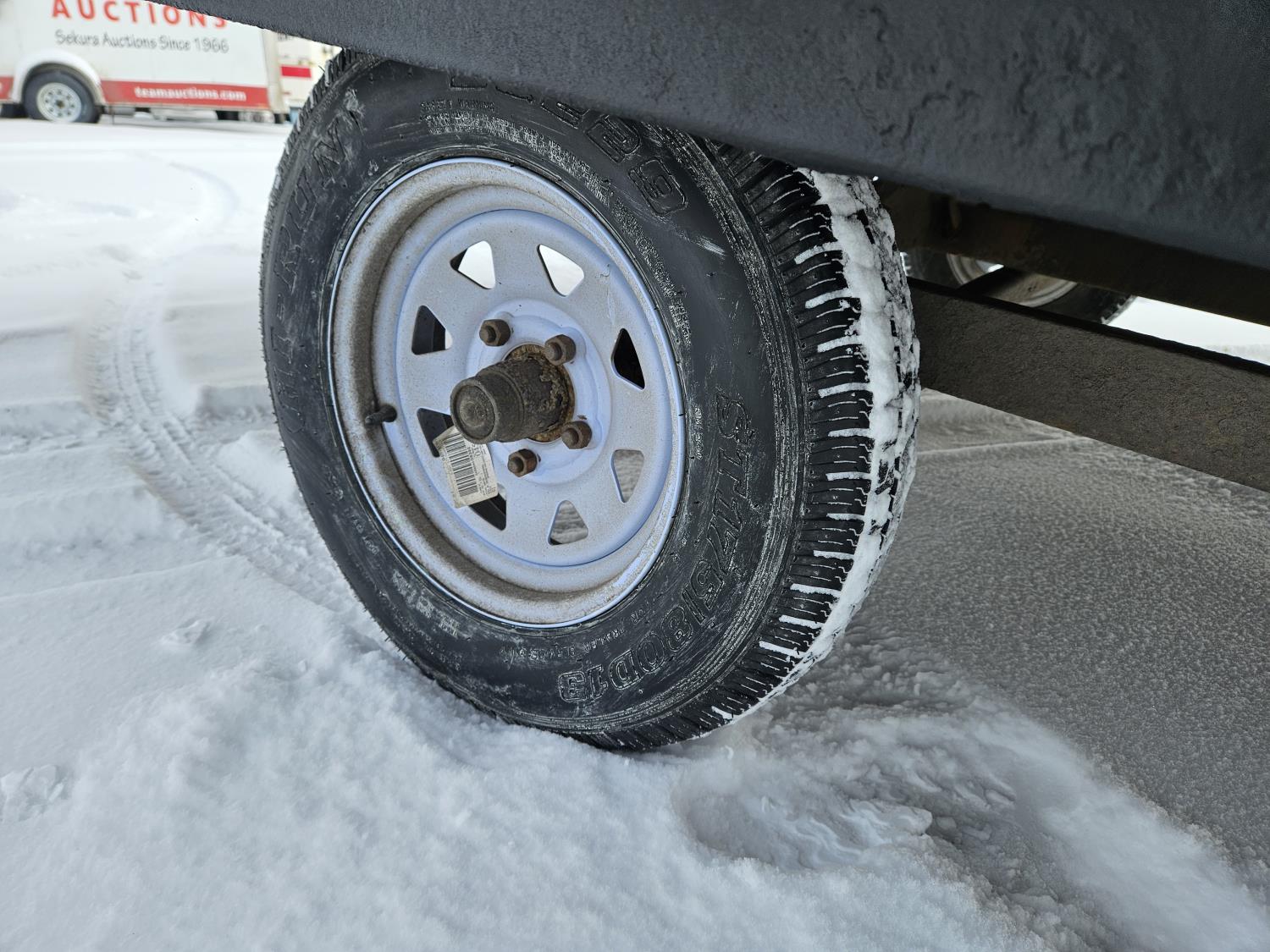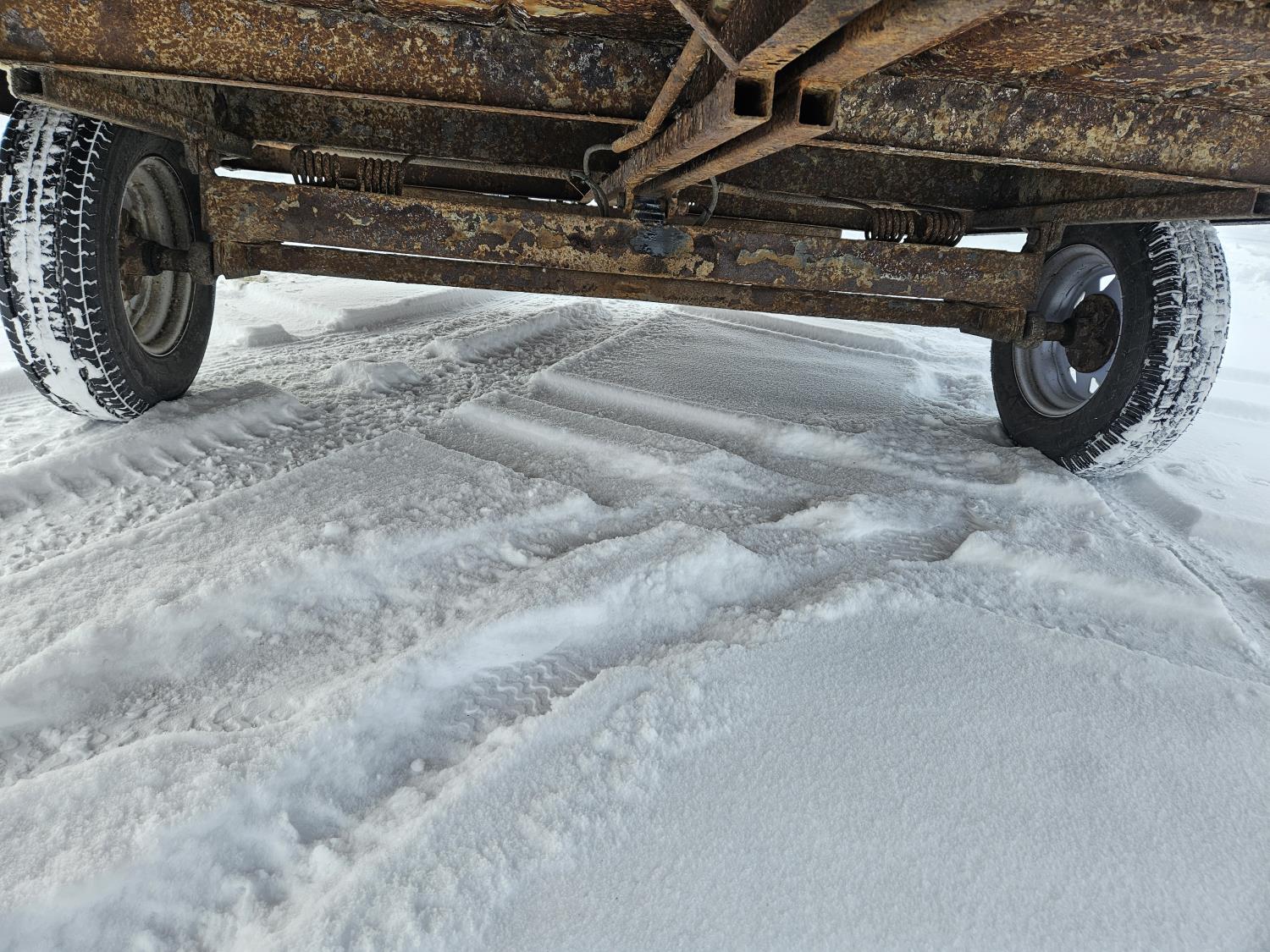 99 inch wide deck, steel deck, torsion suspension, ball hitch, new rims and tires, 2500 lb axles, 175/80R13 tires