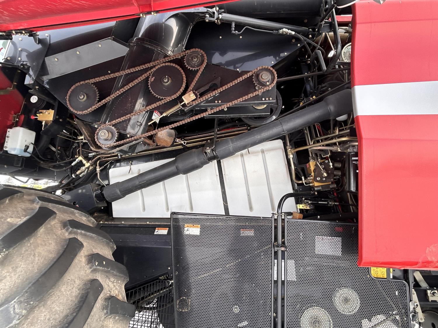 Case IH 15 ft pick-up header, variable speed reel, auto header height, fore & aft, reverser, lateral tilt, rock trap, yield & moisture, chaff spreader, fine cut chopper, grain tank extensions, A/C, radio, buddy seat, AFS Pro 600 Monitor, 800/60R32 front tires, 28L-26 rear tires