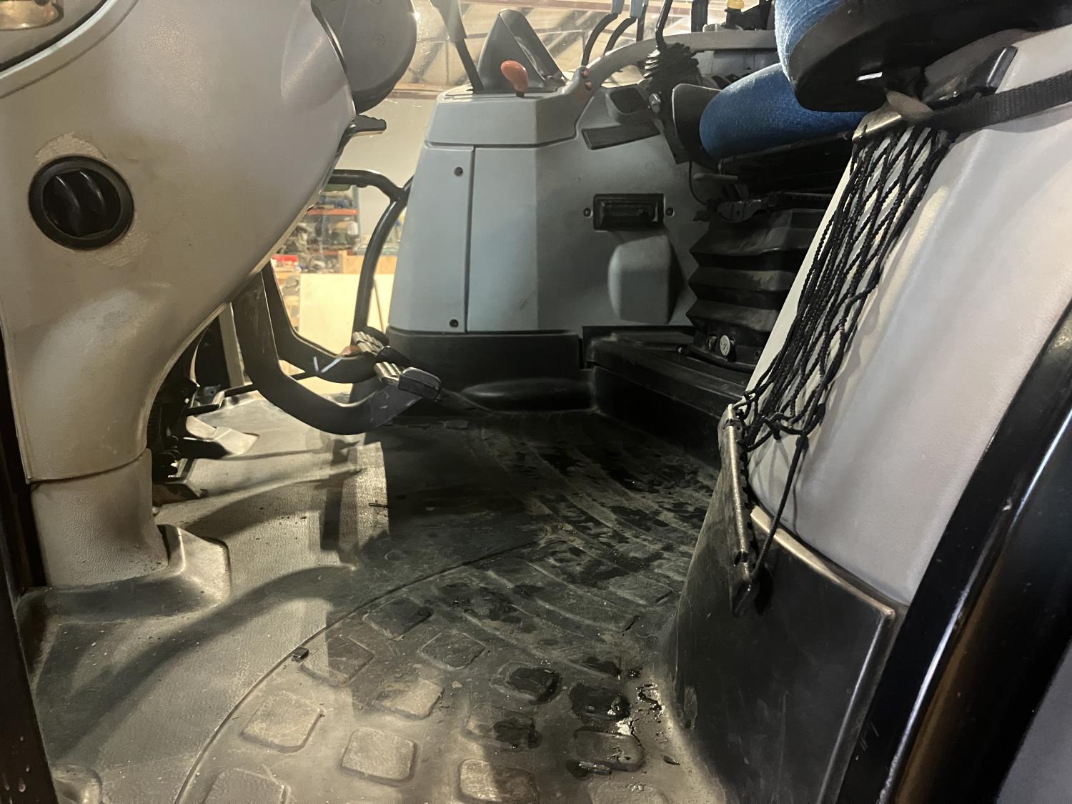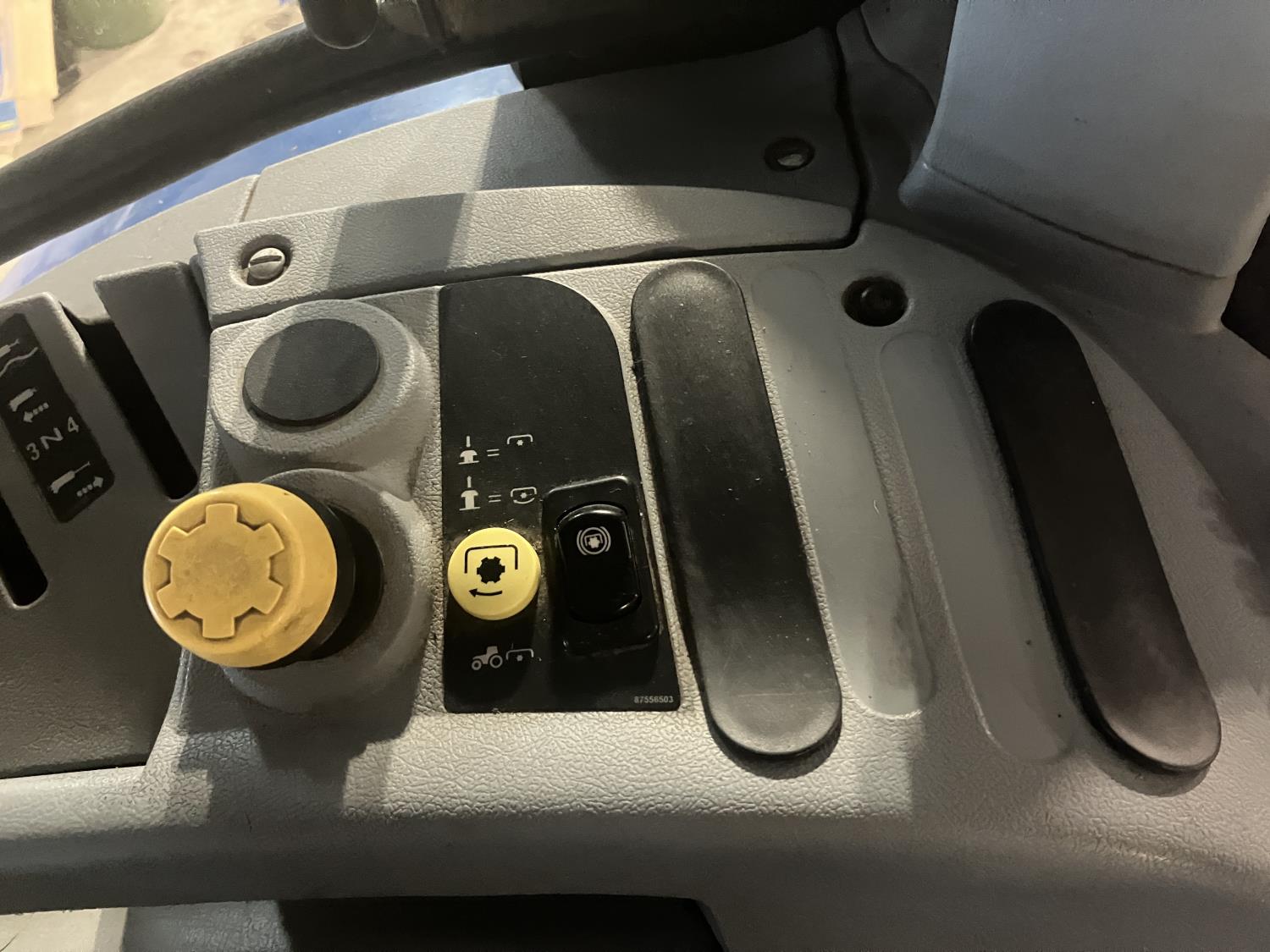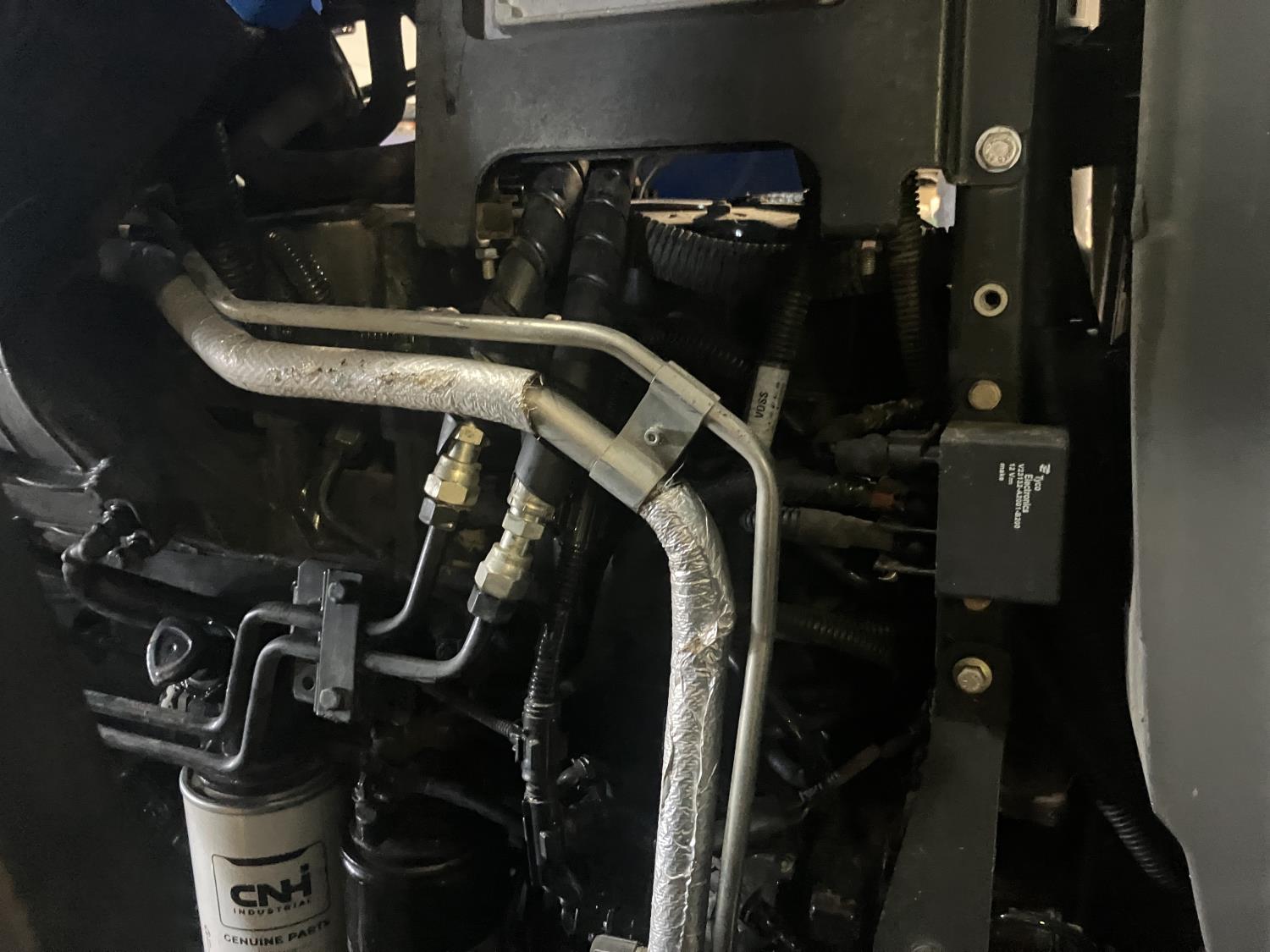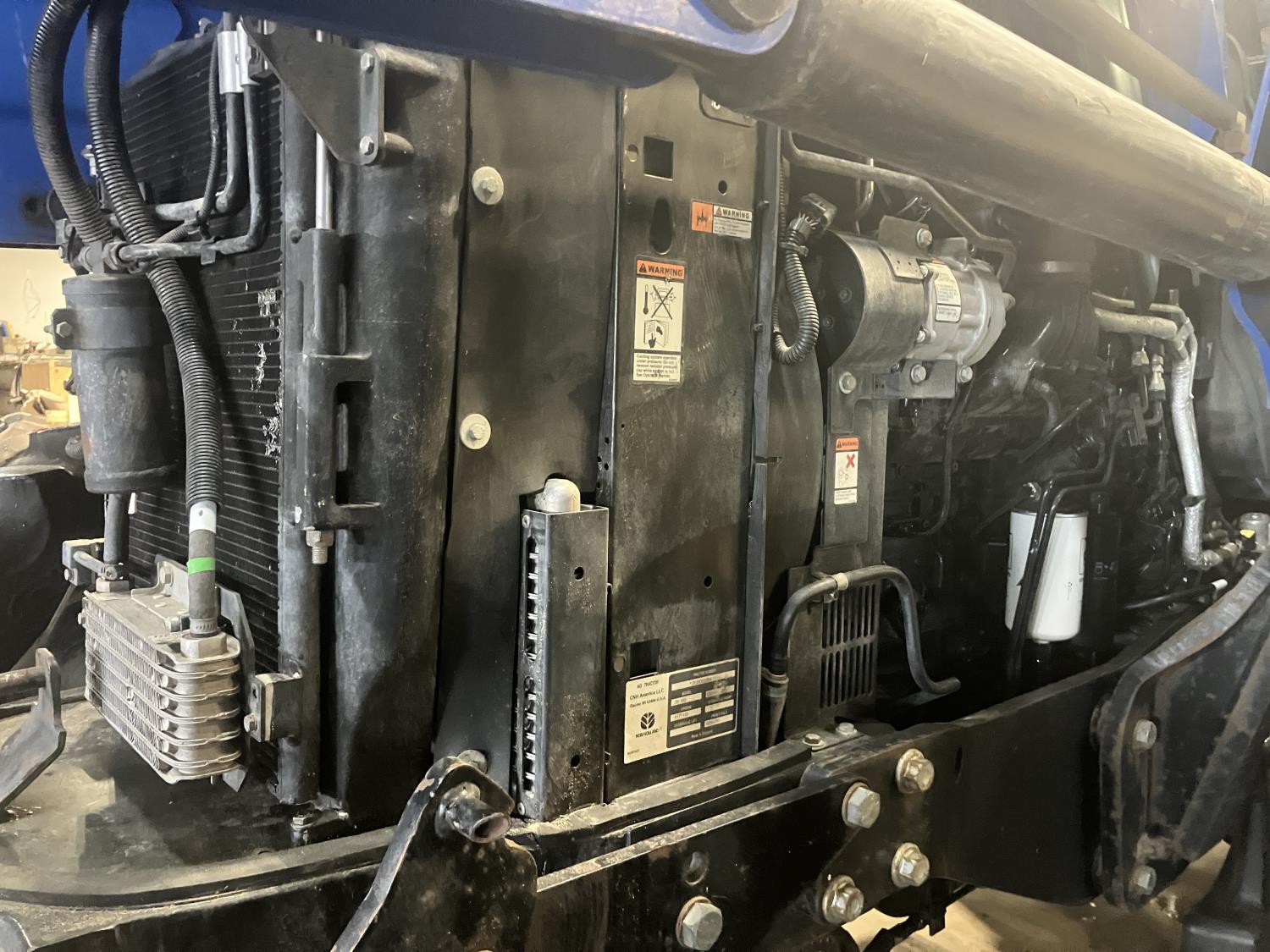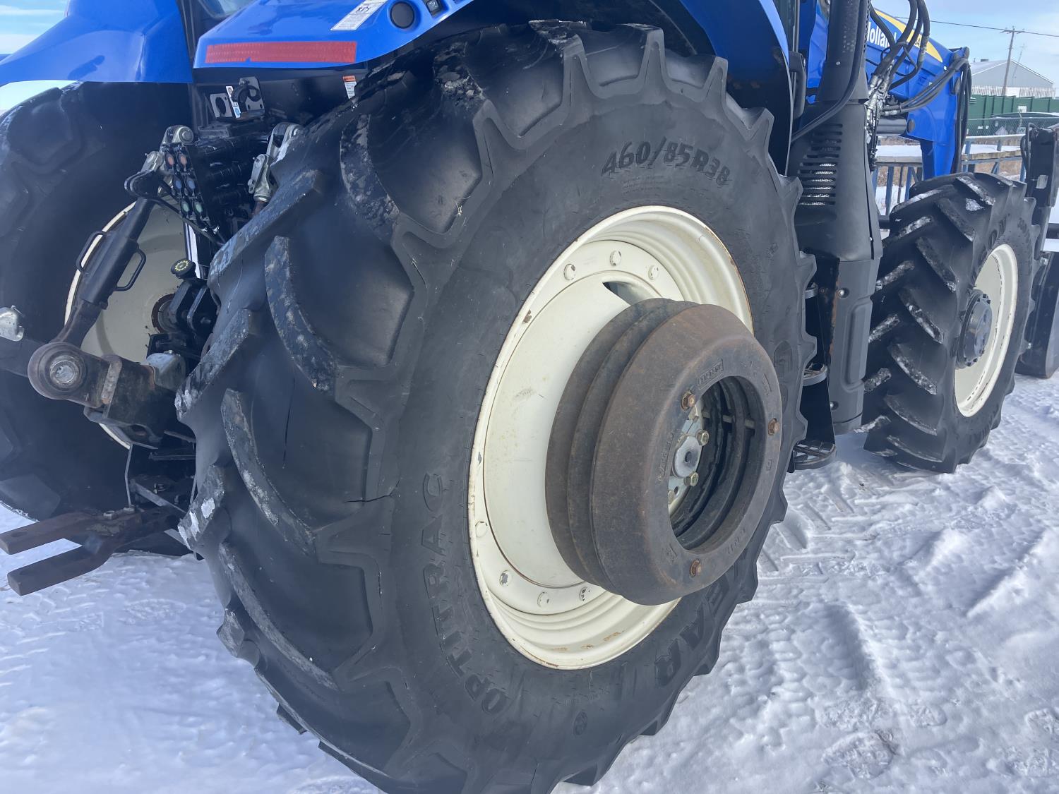 New Holland 840TL loader, grapple, bale forks, mid mount hydraulic connection, FPT 6.7 6 cylinder 165 HP, engine, DEF deleted, 16 speed partial power shift transmission, cab, left hand reverser, rear differential lock, A/C, air ride seat, buddy seat, Sun roof, front and rear window shades, AM/FM Bluetooth integrated radio, engine and transmission block heaters, L&R mirrors, tilt and telescopic steering wheel, rear flood work lights, 540/1000 PTO, 3 point hitch, 3 point hitch exterior control, 3 rear hydraulic outlets, 380/85R28 front tires, 460/85R38 rear tires