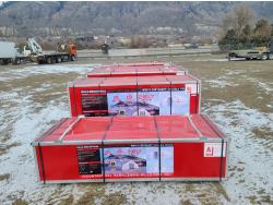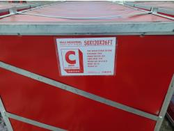 Double truss, 10 ft truss spacing, 21 oz PVC fabric, peak ceiling, 2.4 inch tubing, total weight of five crates 12,103 lb