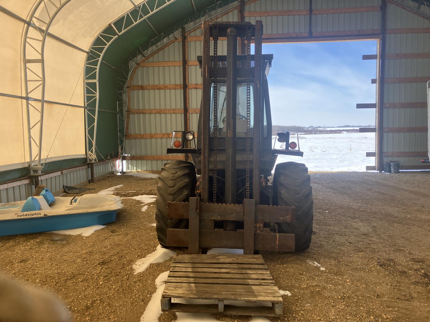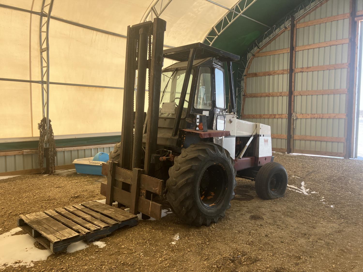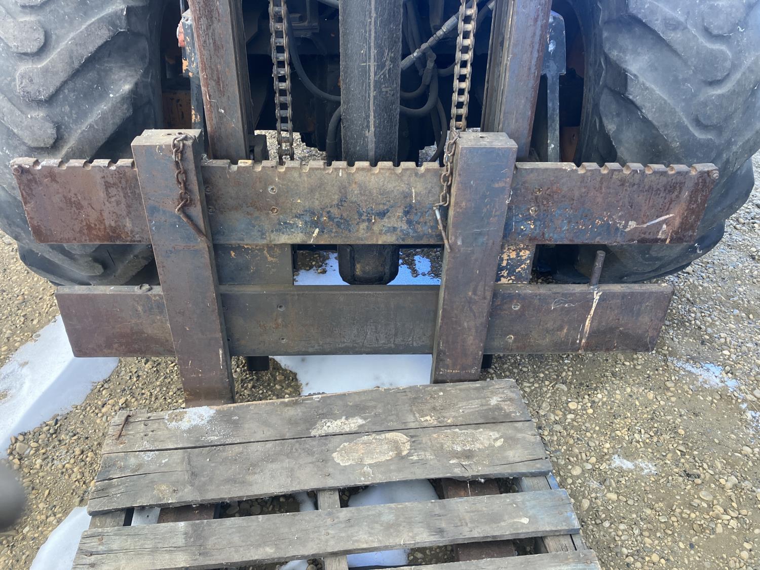 Enclosed cab, diesel, shuttle shift, electric circulating block heater, 48 inch pallet forks, side shift, 16.96-24 front tires, 11L-16+ rear tires