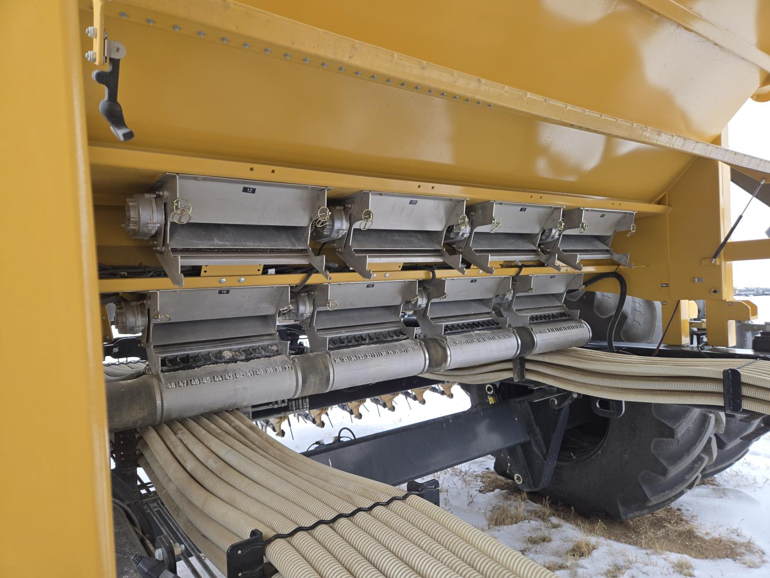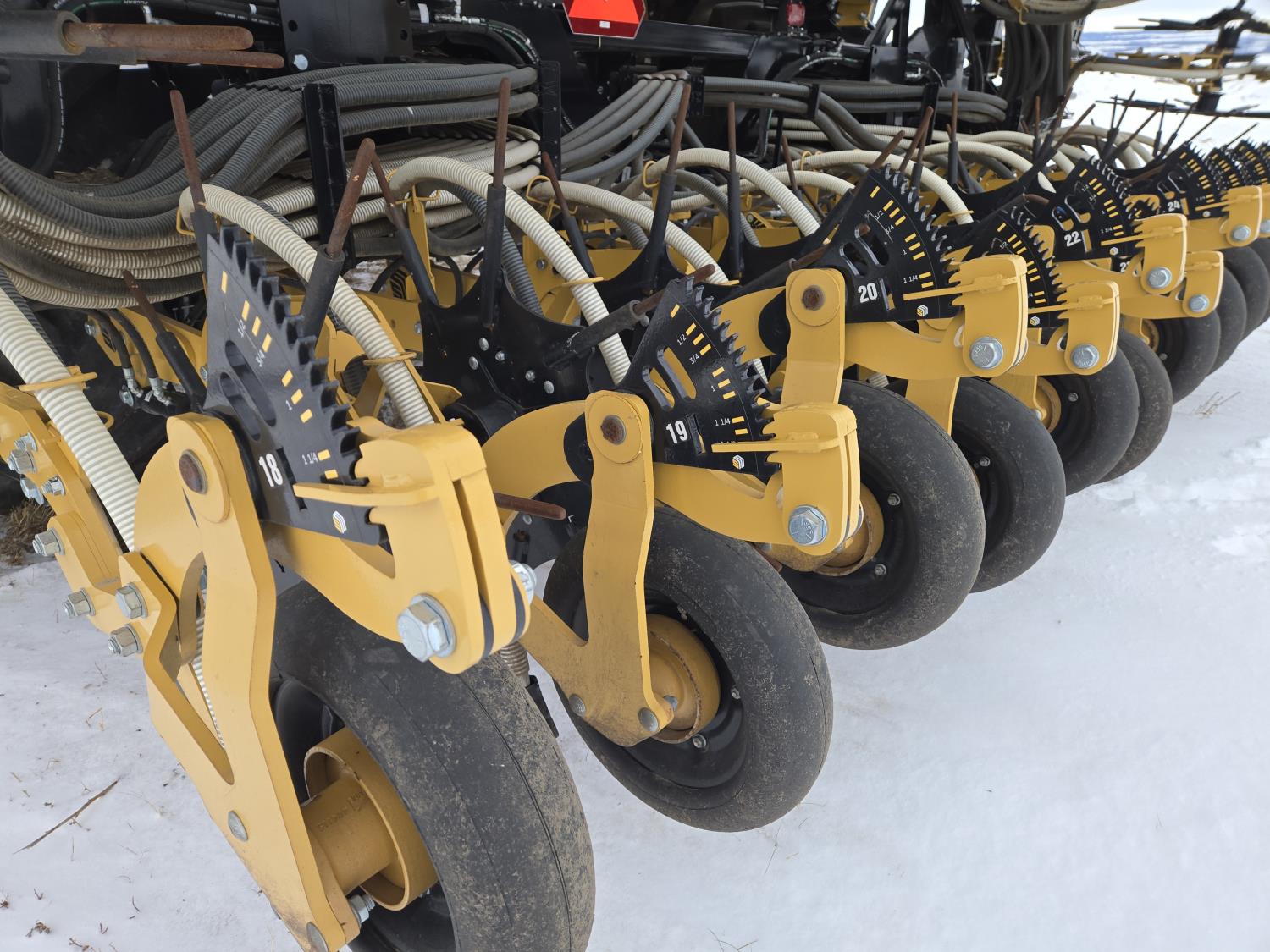 15 inch spacing, Raven Pro sectional control monitors, double fan, sectional control, Integrated 4 compartment tanks, paired row openers, scales, row cleaner, 4.5" foam filled packer wheels, electric tarp tank covers, 12.5-15 Wing tires, dual 710/70R38 rear tires