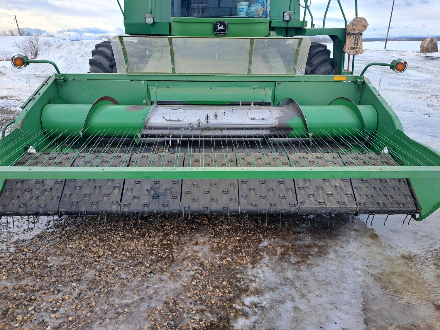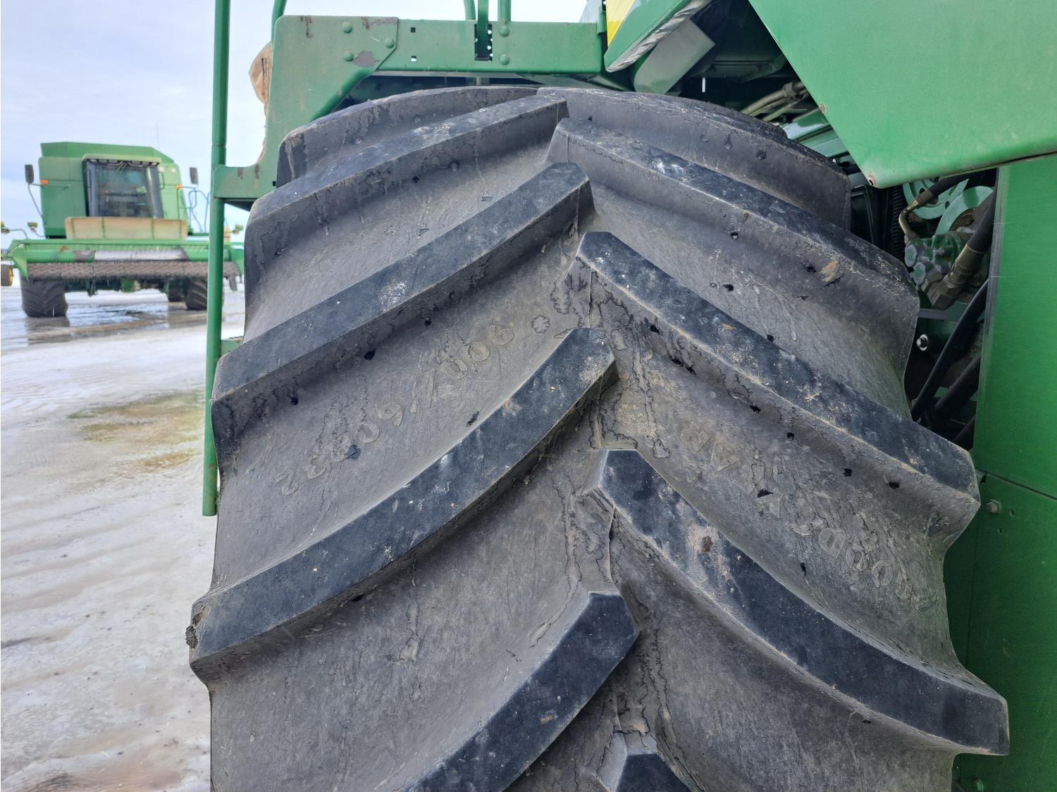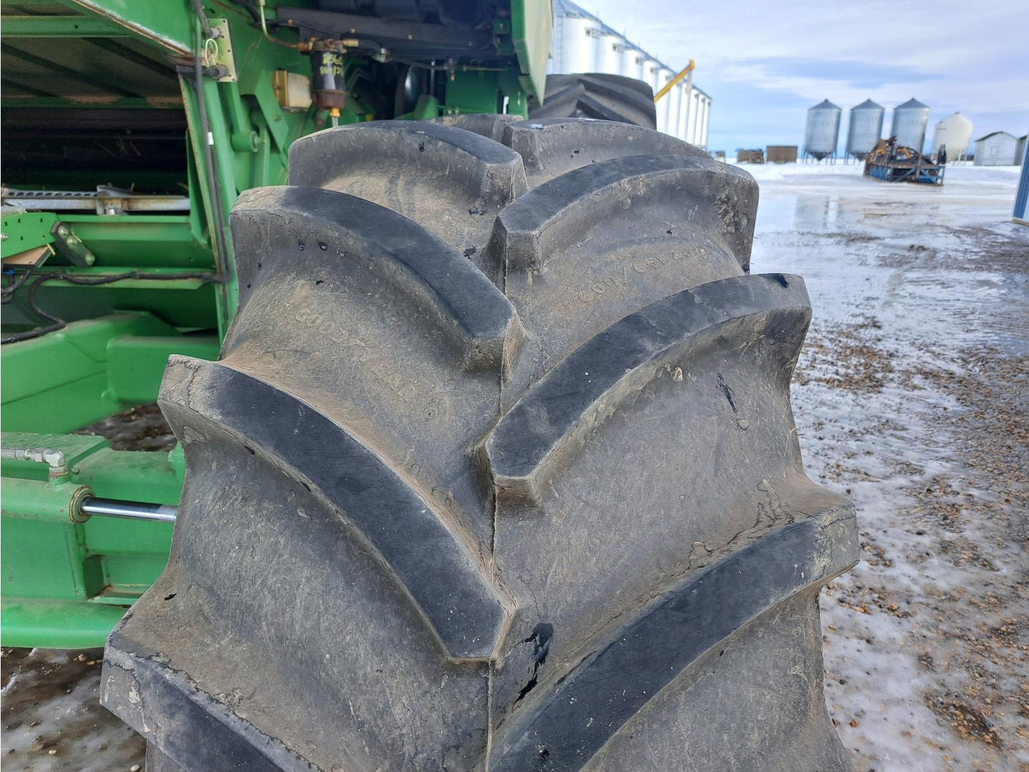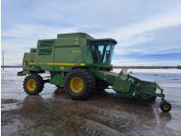 Always shedded and green lighted at the local JD dealer. This is a one owner combine has had a lot of new thresher parts replaced in the past. The New 4 Good year tires and custom build rims costed over $15,000 and are like new. The seller said it made a world of difference on soft ground. If you need a good shape combine and need to bale straw this is the one you want. The combine can stay in the sellers shop till spring time all he asks is for the new buyer to put there insurance on the combine. Local trucks in the area for hire if needed.