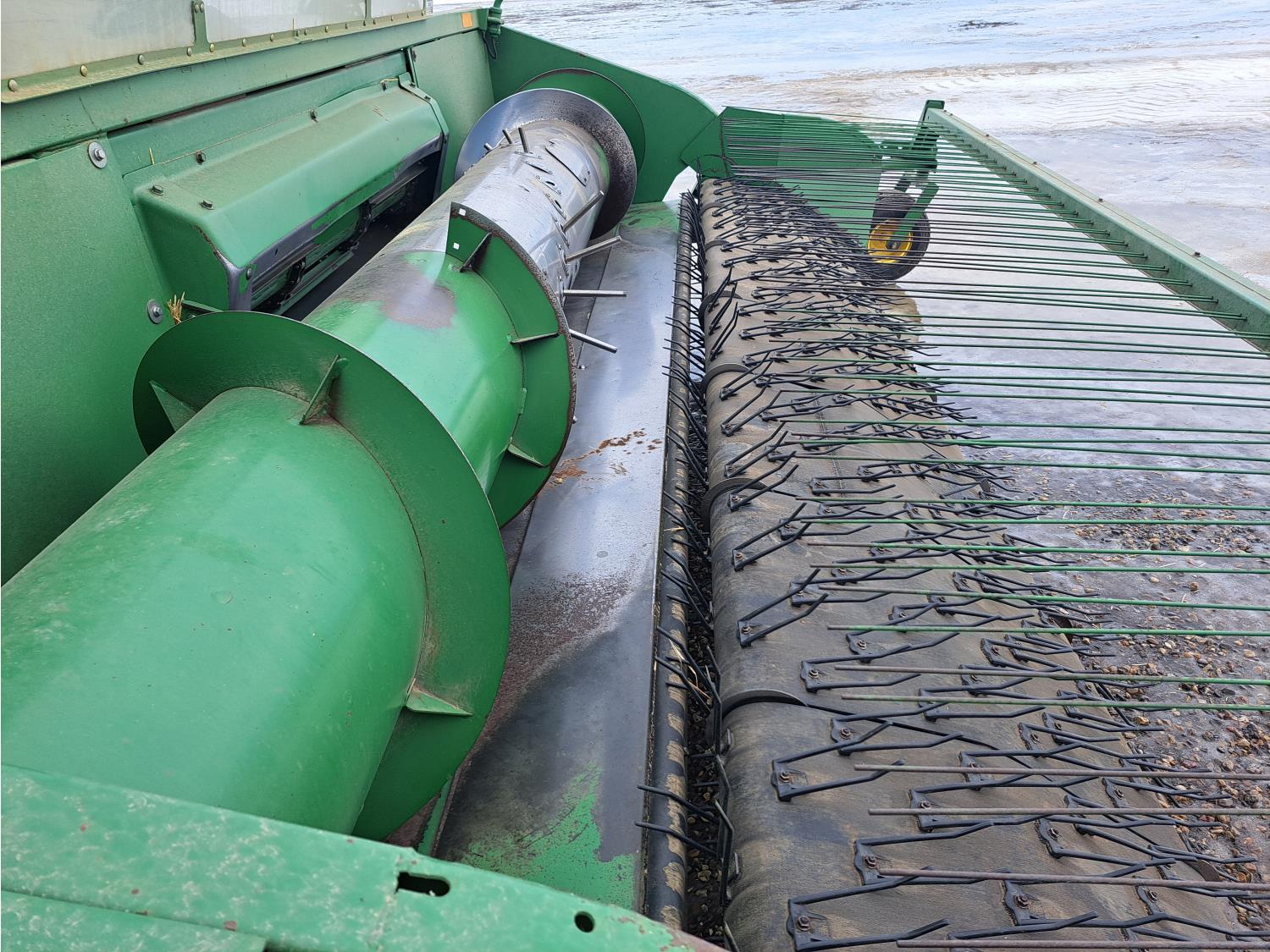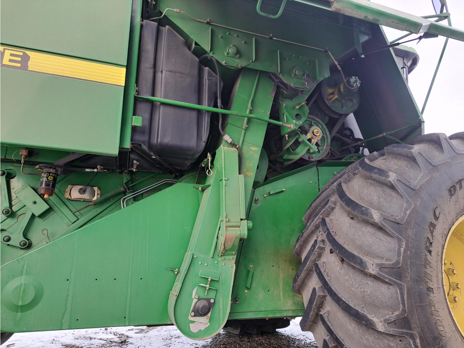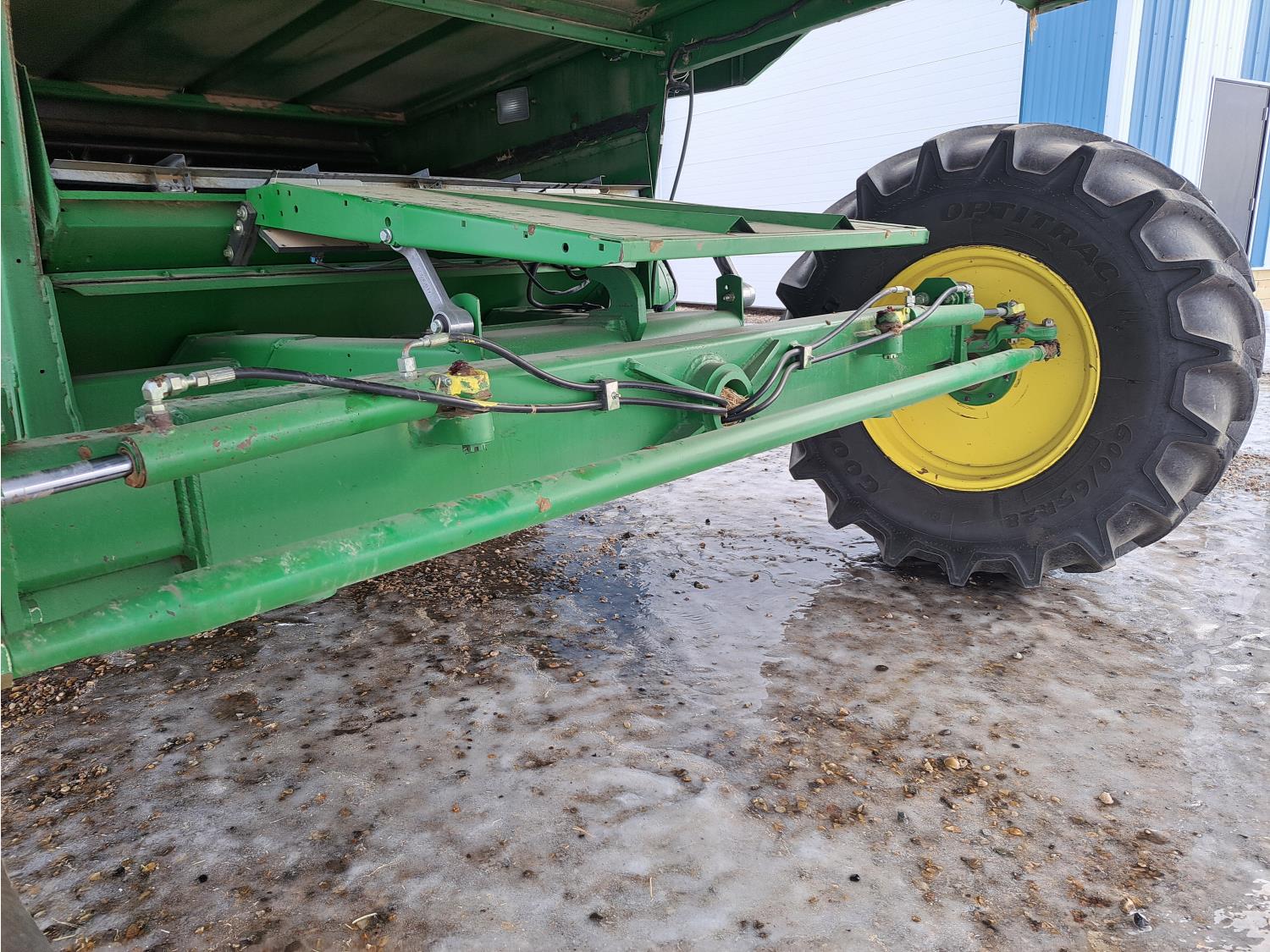 Always shedded and green lighted at the local JD dealer. This is a one owner combine has had a lot of new thresher parts replaced in the past. The New 4 Good year tires and custom build rims costed over $15,000 and are like new. The seller said it made a world of difference on soft ground. If you need a good shape combine and need to bale straw this is the one you want. The combine can stay in the sellers shop till spring time all he asks is for the new buyer to put there insurance on the combine. Local trucks in the area for hire if needed.