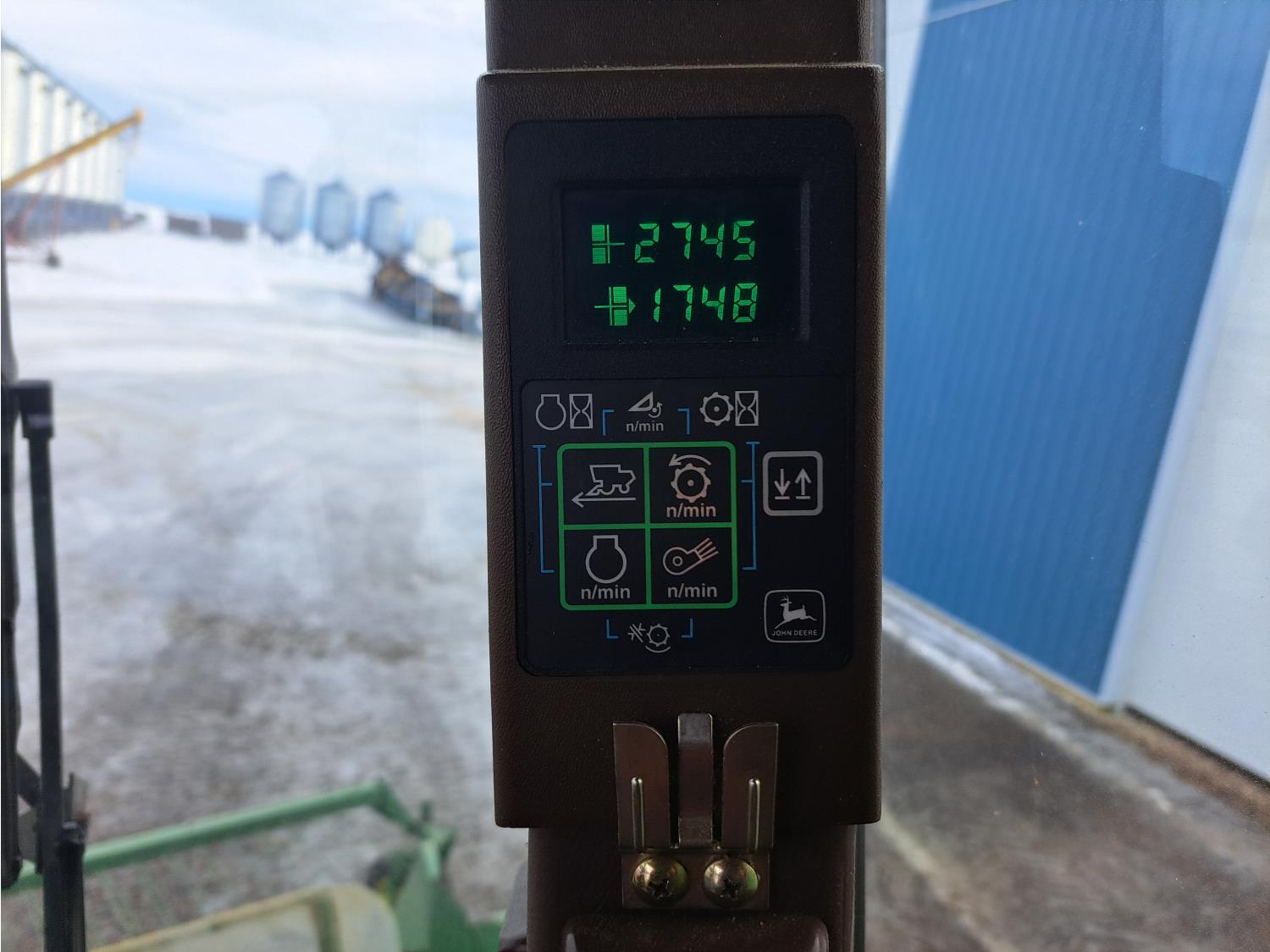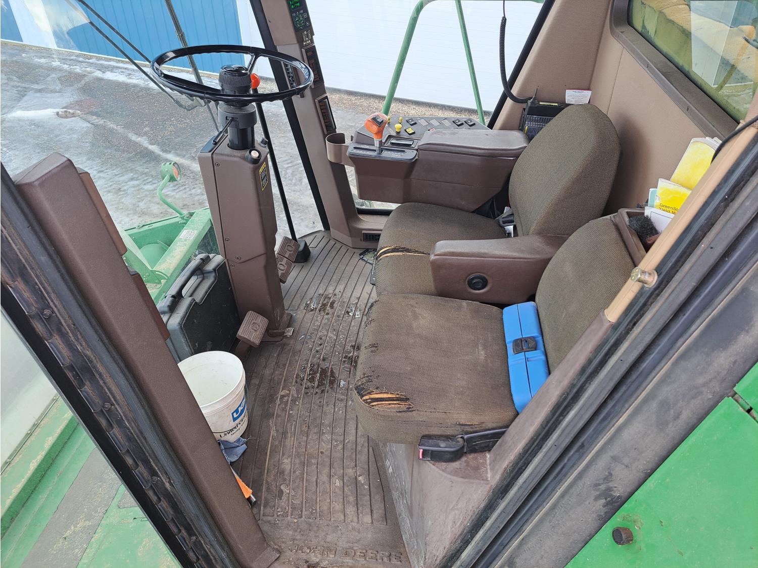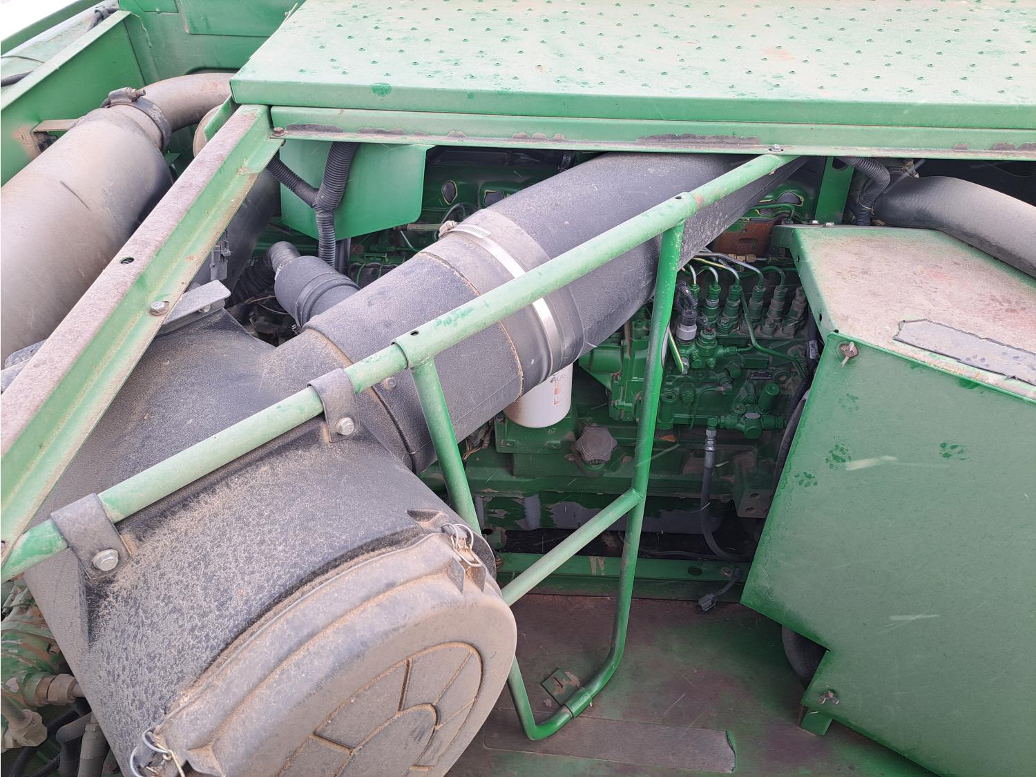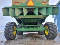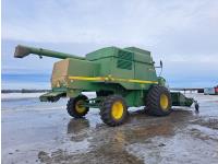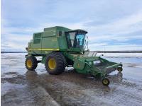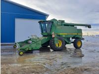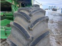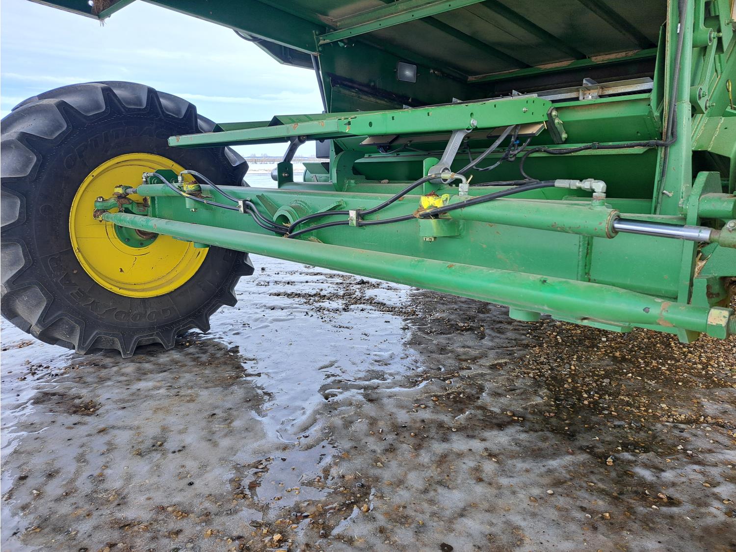 John Deere 914 14 ft pick-up header, chopper, dual speed cylinder, hydraulic feeder house reverser, long unloading auger, air foil sieve, grain loss monitor, adjustable rear axle, A/C, radio, buddy seat, Green Star monitor, just a few years ago new Goodyear 900/60R32 drive tires and rims, new 600/65R28 rear tires and rims