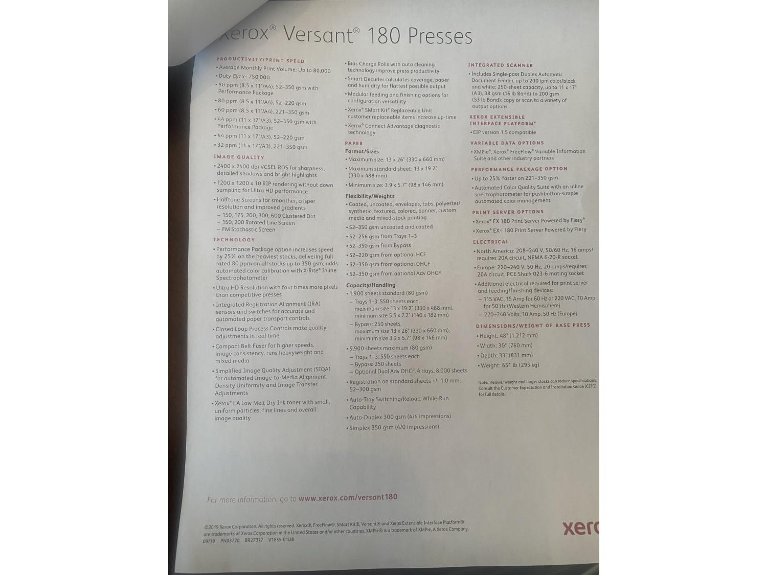 85 Xerox Versant 180 Press Commercial Printer Package