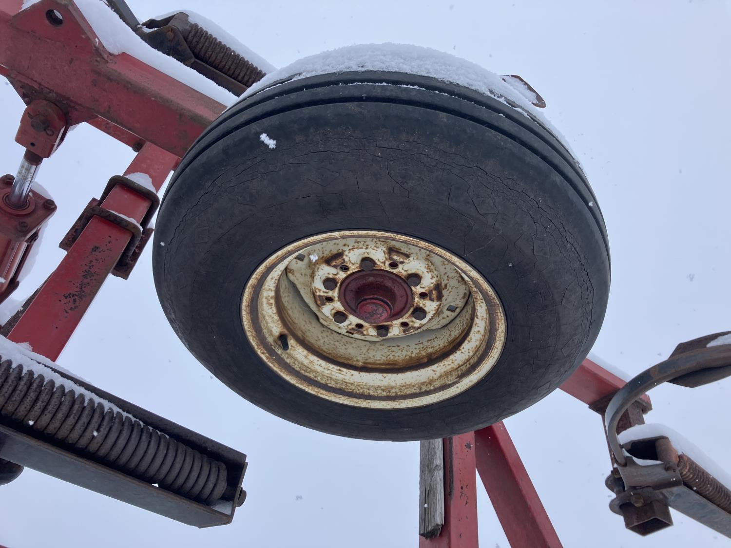 10 inch spacing, spikes, spring tooth harrows, walking axles on main frame, 15" main frame tires, 15" wing tires