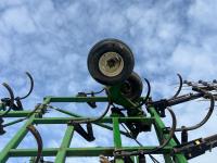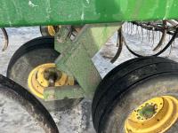 10 inch spacing, Degelman bar spring tooth harrows, walking axles on main frame, walking axles on wings, 31X13.5-15 main frame tires