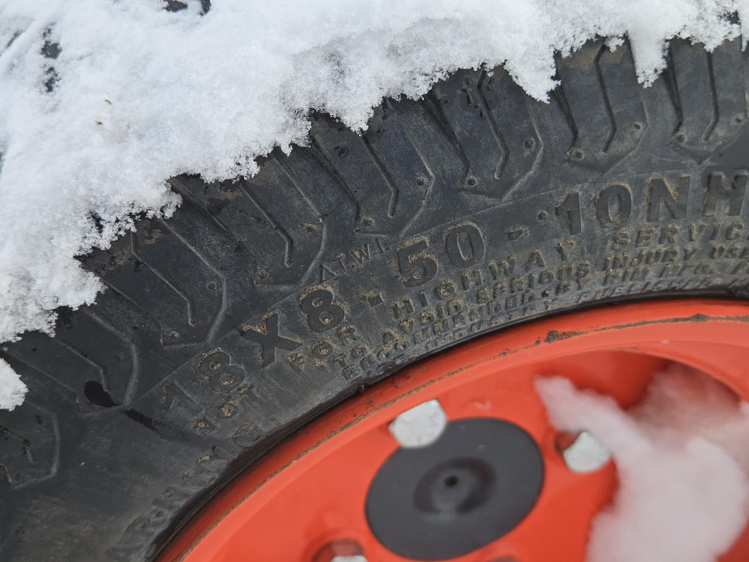 Kubota D902 3 cylinder 23 HP, diesel engine, hydro 2 range transmission, open station platform, 540 PTO, 3 point hitch, 18X8.50-10 front tires, 26X12.00-12 rear tires