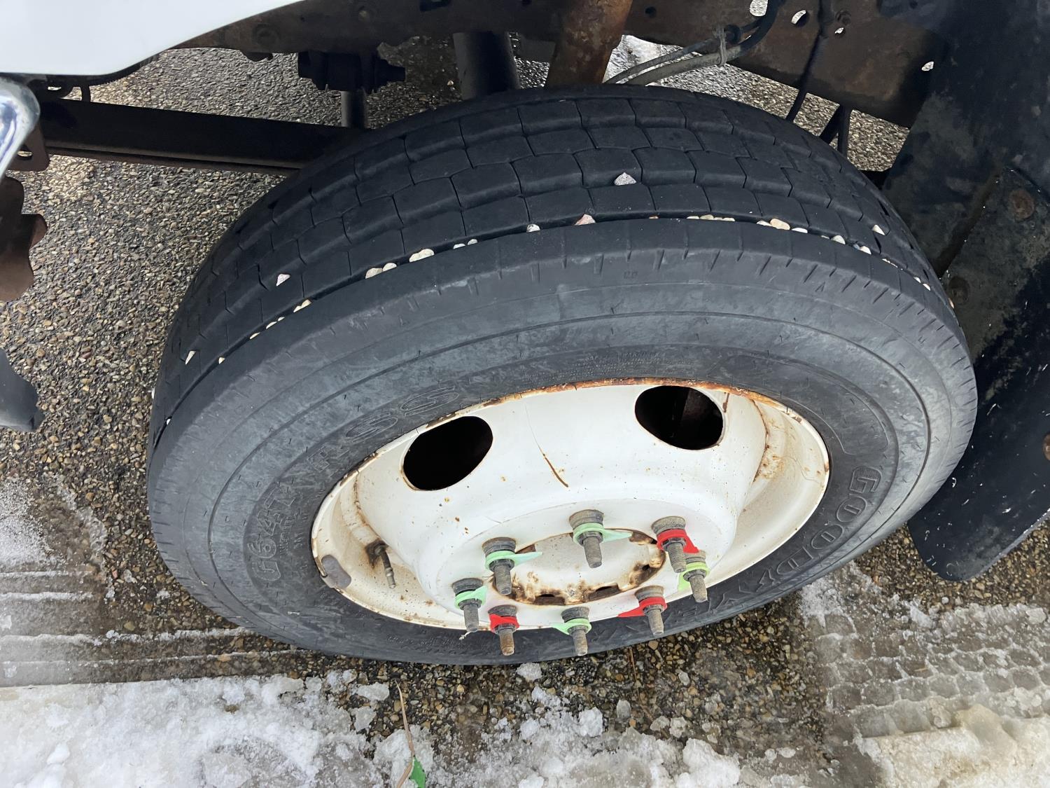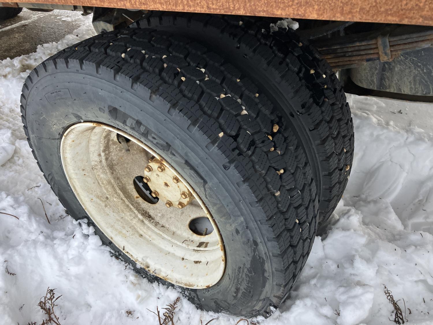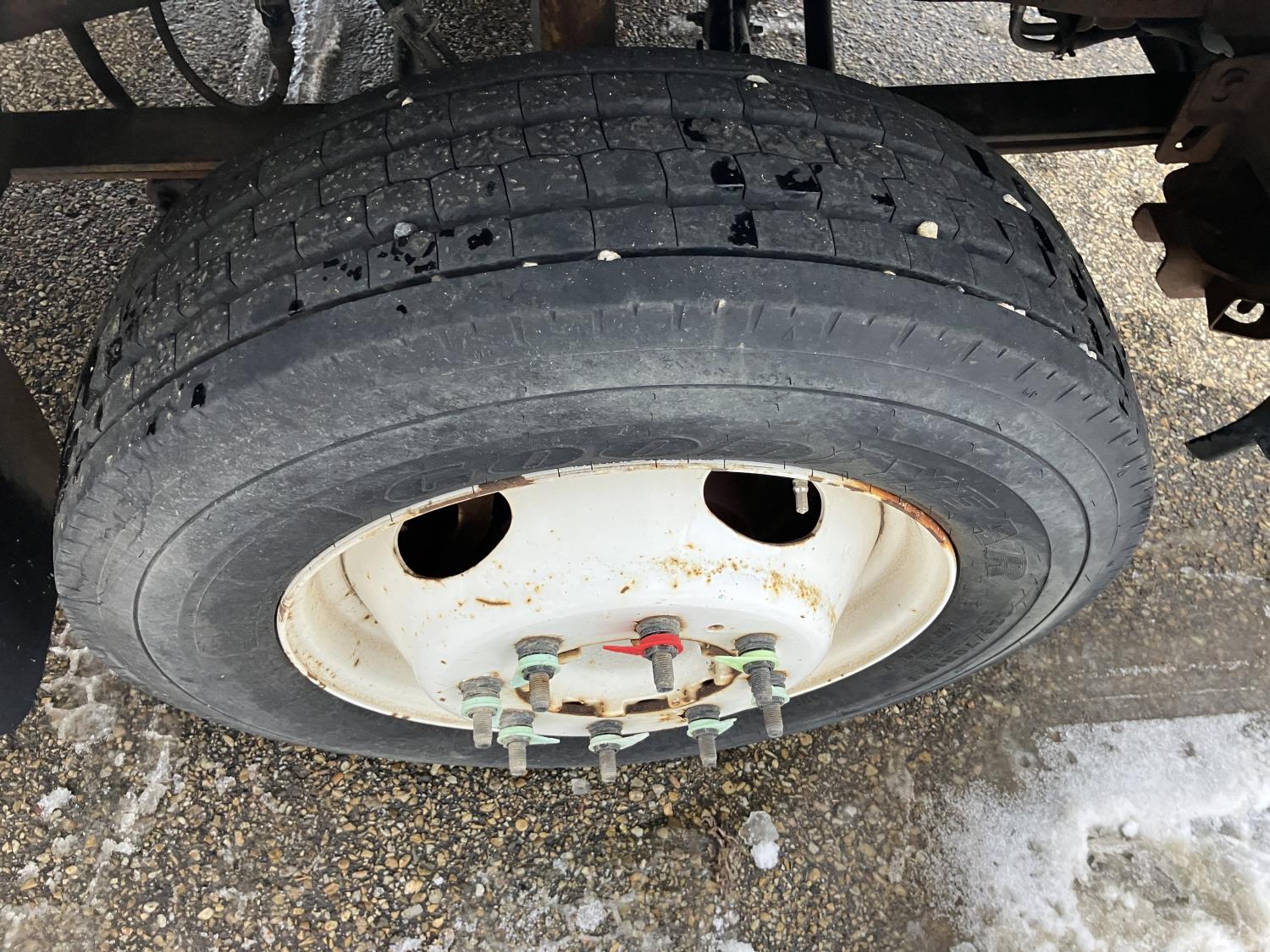 Ford V8 diesel engine, Allison transmission, 8' X 12' deck, tool box, duals, 225/70R19.5 tires